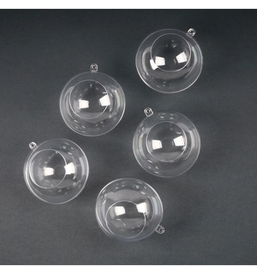 Набір із 5 прозорих, розбірних пластикових форм ТМ SANTI "Куля з отвором", діаметром 10 см — це легке, міцне та просте у використанні рішення, що відкриває безліч можливостей для реалізації будь-яких креативних задумів. Вони чудово підходять для будь-яких святкових прикрас (наповнюйте блискітками, намистинами чи фігурками), оригінальних подарунків (сховайте сюрпризи чи солодощі), створення флораріумів та декору для інтер‘єру (підвісьте, розмалюйте, обклейте). Також це чудовий матеріал для дитячої творчості, що розвиває уяву. Кожна половинка "плоскої кулі" легко з‘єднується та надійно замикається, утворюючи міцну та стійку конструкцію. До того ж, кожна куля має зручну петельку (підвіс), що дозволяє легко повісити її на ялинку, гілку, вікно чи будь-яке інше місце.