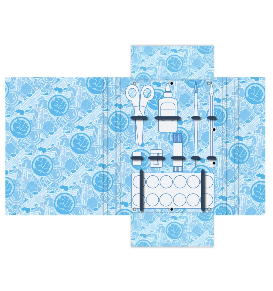 - На внутрішній поверхні папки нанесена схема розміщення приладдя для праці та гумки для їх фіксації;