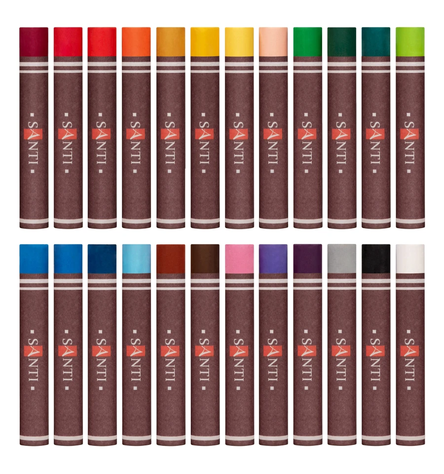 Важливою перевагою пастелі масляної SANTI є здатність залишати руки художника чистими під час використання, оскільки кожна одиниця пастелі обгорнута в паперову гільзу.