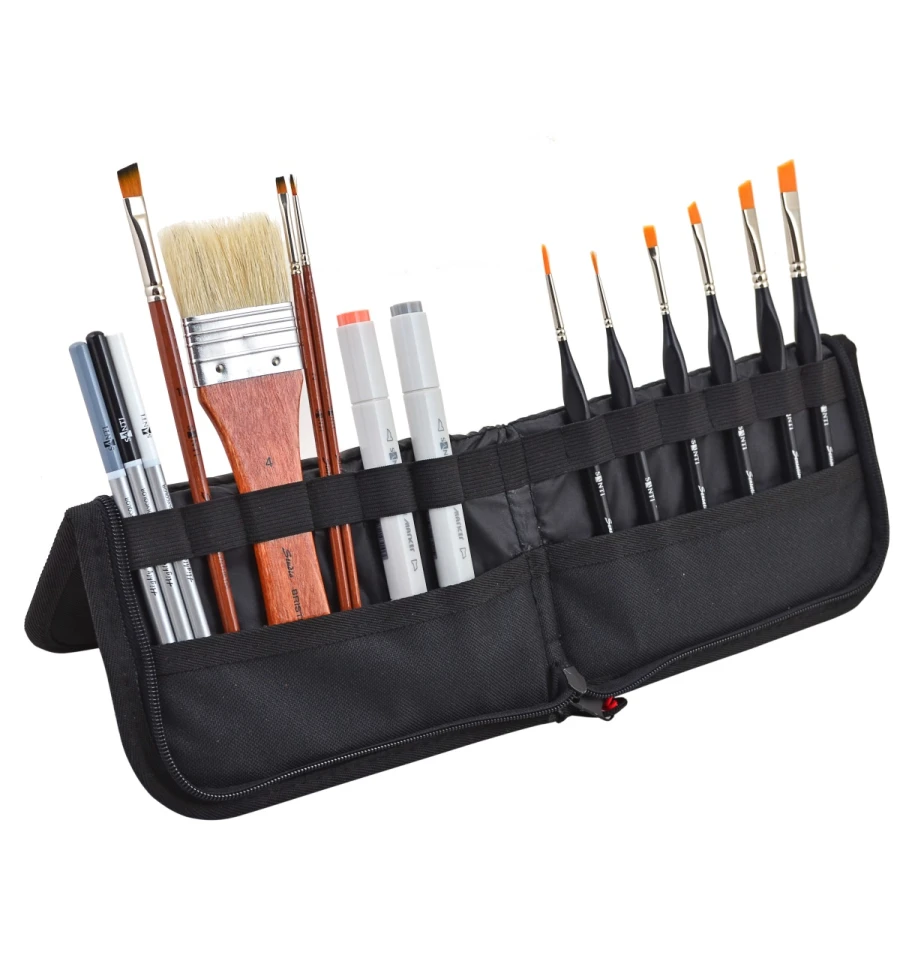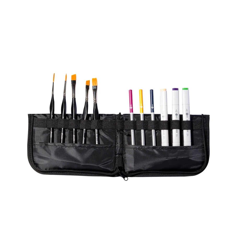 Зручний пенал-підставка (холдер) призначений для легкої і комфортної роботи з пензлями, олівцями та іншими аксесуарами для художніх робіт, а також для їх дбайливого зберігання і транспортування. В пеналі передбачені відділення для надійної фіксації кожного інструмента. Розмір пенала: 260*200 мм. Розмір у розкладеному вигляді: 400*130 мм. Для стійкого положення холдер має регульовану кліпсу. Матеріал: поліестер.