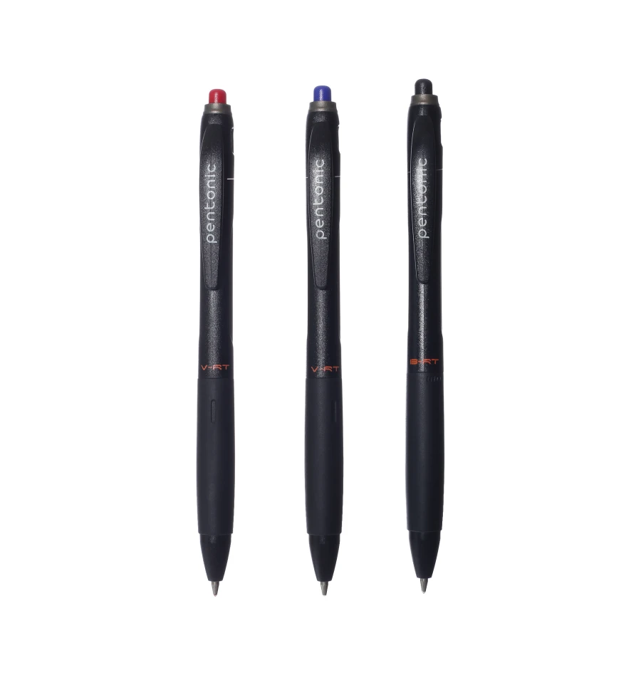 Ручки Pentonic VRT - це елегантний та сучасний дизайн, а також гарантія бездоганного письма. Ультралегкий корпус із гладким матовим покриттям у чорному кольорі виготовлений з високоякісного первинного пластику та оснащено гумовим грипом. Унікальний запатентований склад чорнила на масляній основі має наднизьку в‘язкість, що забезпечує швидке висихання і економну витрату. Пишучий вузол Premec (швейцарська технологія) гарантує бездоганну якість письма. Технологія гладкого письма забезпечує легкість використання без натискання та додаткового зусилля. Товщина лінії письма 0, 7мм. Упаковка - 100 шт. Колір чорнила: синій - 70 шт, чорний - 20 шт, червоний - 10 шт.