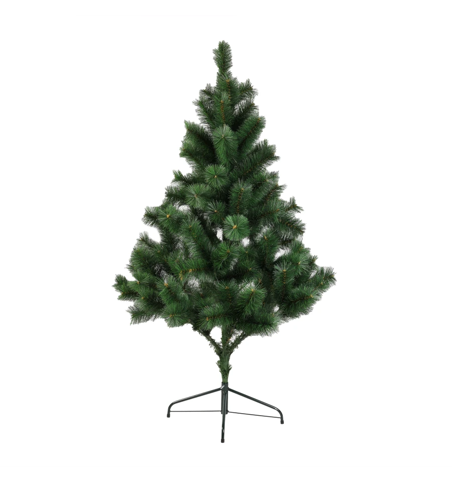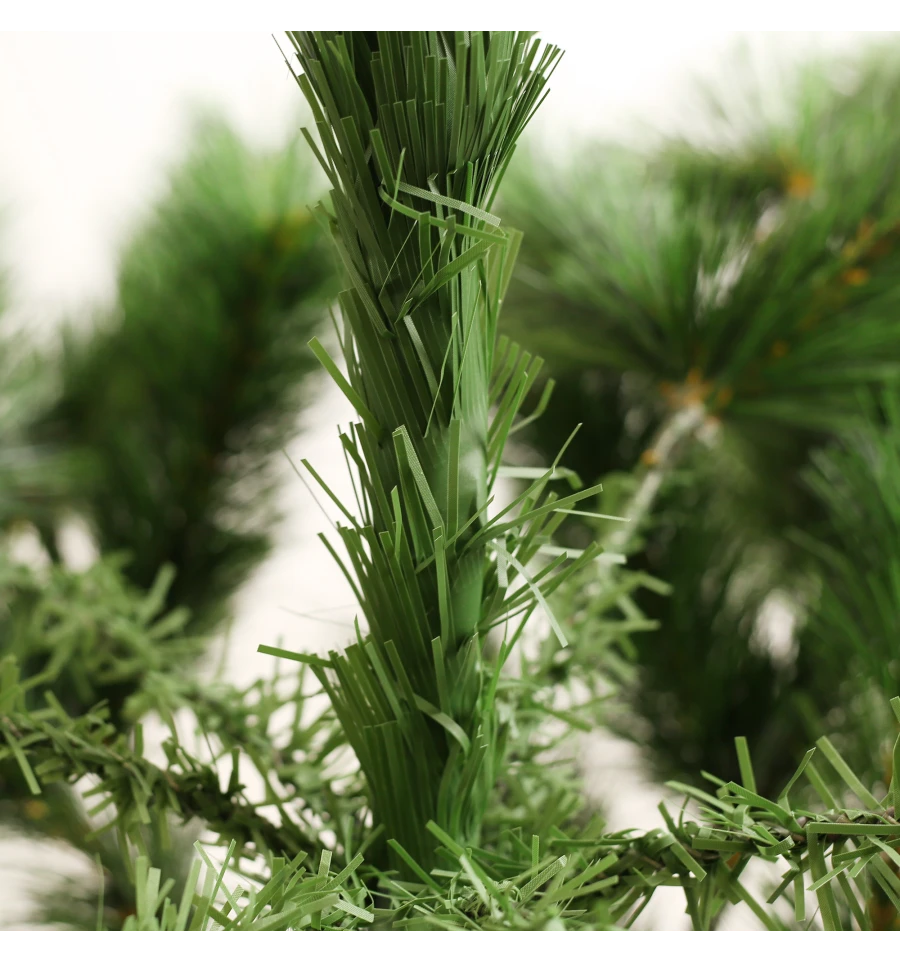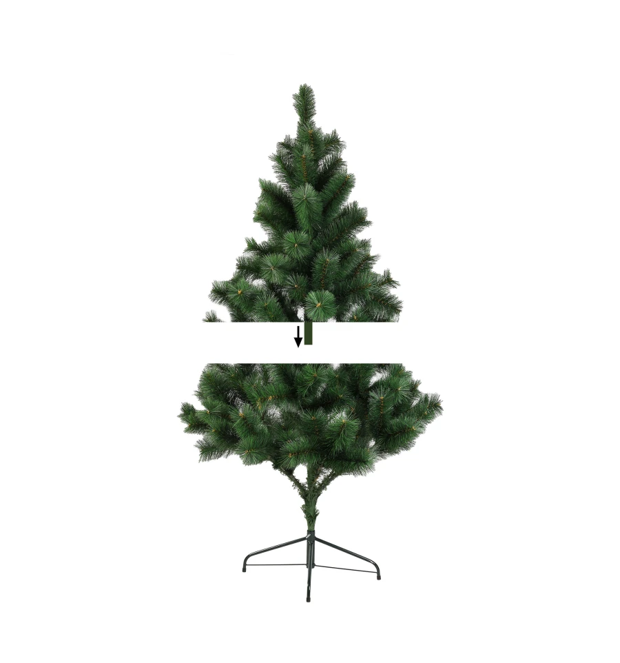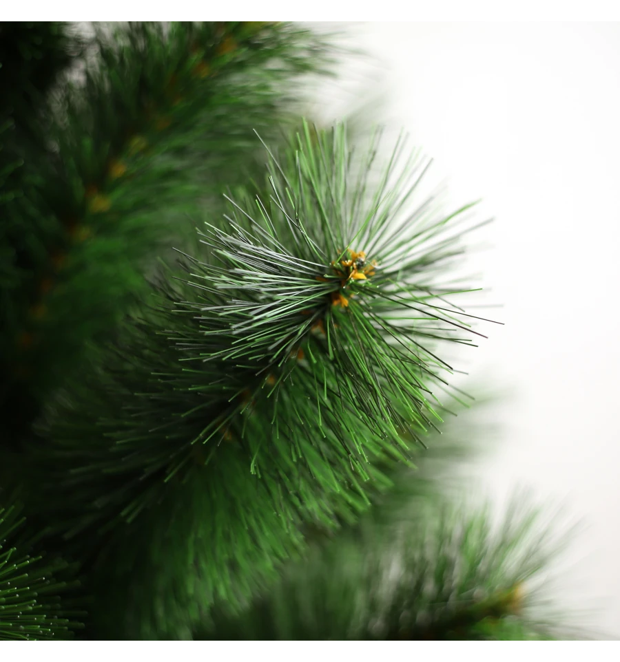 Штучна сосна подібна натуральному дереву, що росте в живій природі. Всі матеріали екологічно чисті, мають протипожежні властивості. Великим плюсом штучної сосни є її довговічність, а складання конструкції не забере багато часу. Красиве і пишне новорічне дерево буде щорічно наповнювати будинок радістю і благополуччям у різдвяний період. Матеріал: ПВХ плівка шириною 10 см; метал; дріт. Висота: 150 см. Діаметр нижнього ряду: 116 см. Система складається з двох частин. Підставка сосни — це металева хрестовина з болтами, що закріплюють стовбур. Габарити: 1,50 м.