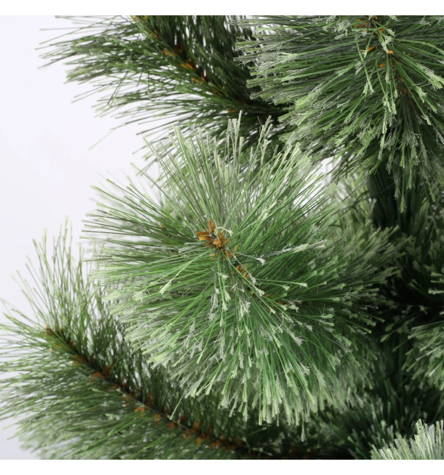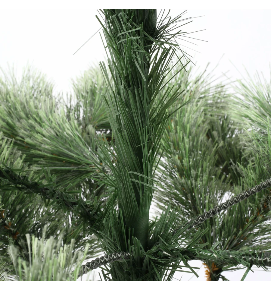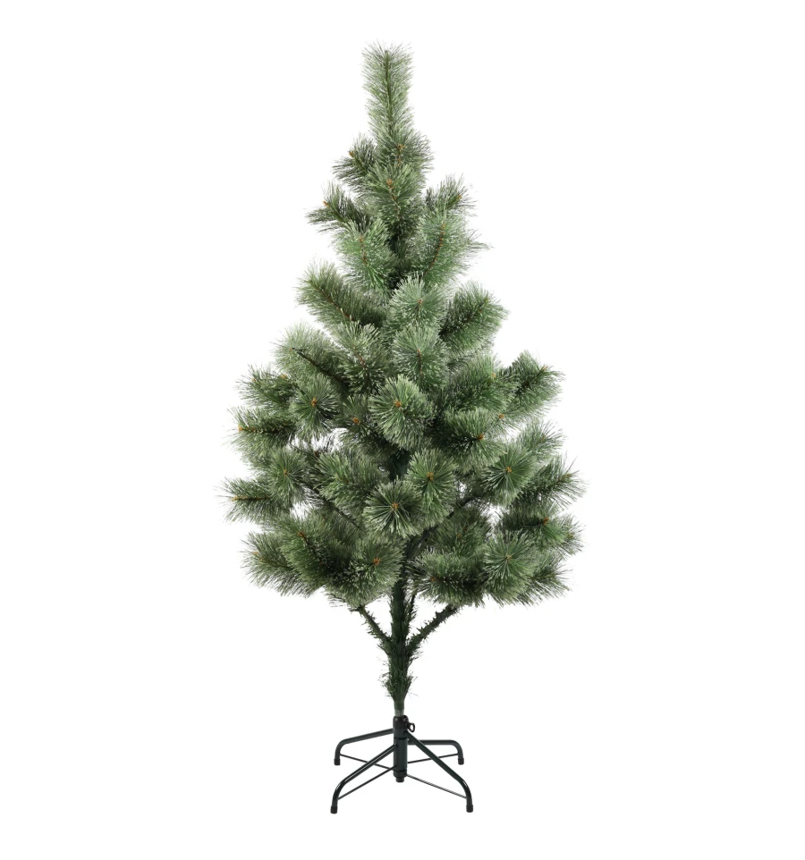 Штучна сосна подібна натуральному дереву, що росте в живій природі. Всі матеріали екологічно чисті, мають протипожежні властивості. Великим плюсом штучної сосни є її довговічність, а складання конструкції не забере багато часу. Красиве і пишне новорічне дерево буде щорічно наповнювати будинок радістю і благополуччям у різдвяний період. Матеріал: ПВХ плівка шириною 12 см; метал; дріт. Висота: 150 см. Діаметр нижнього ряду: 96 см. Система складається з двох частин. Підставка сосни — це металева хрестовина з болтами, що закріплюють стовбур. Габарити: 1,50 м.