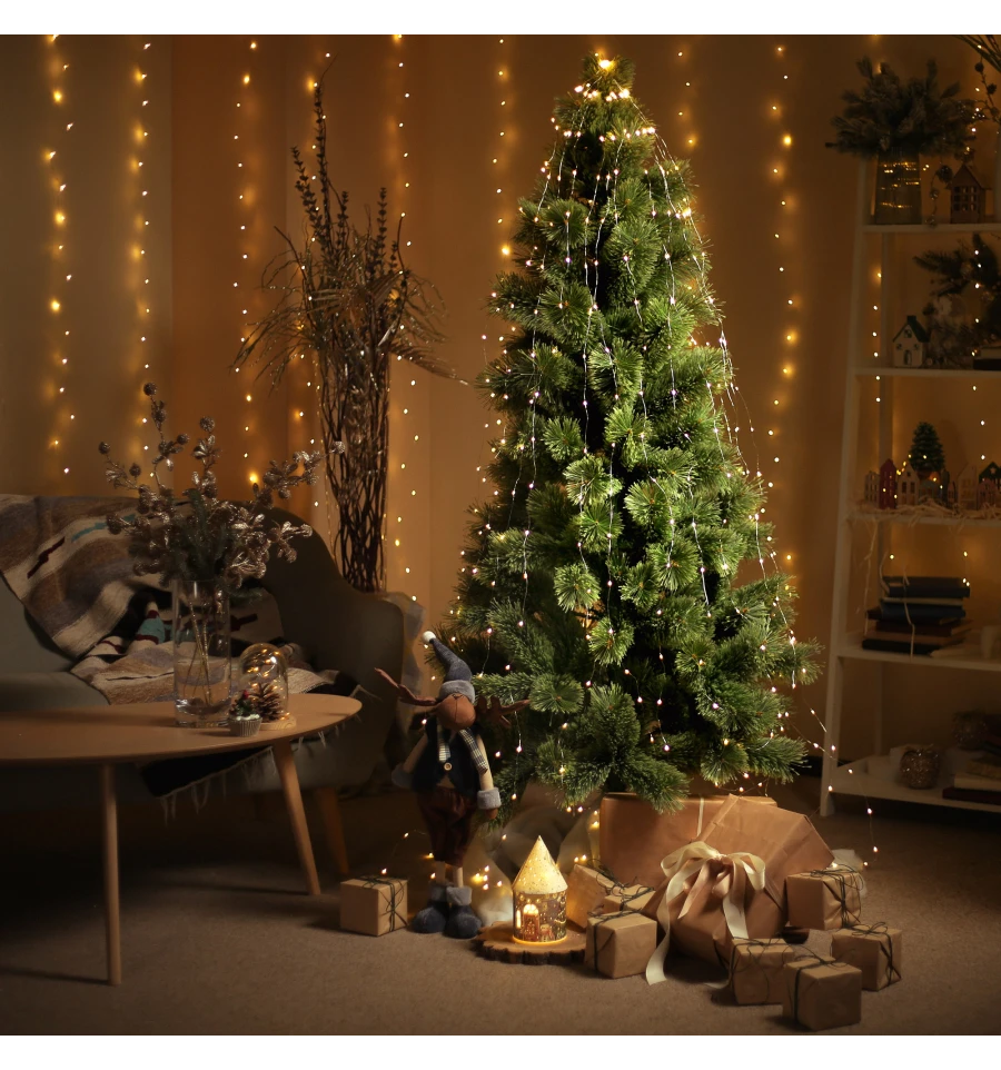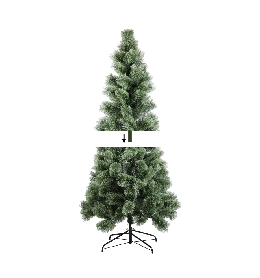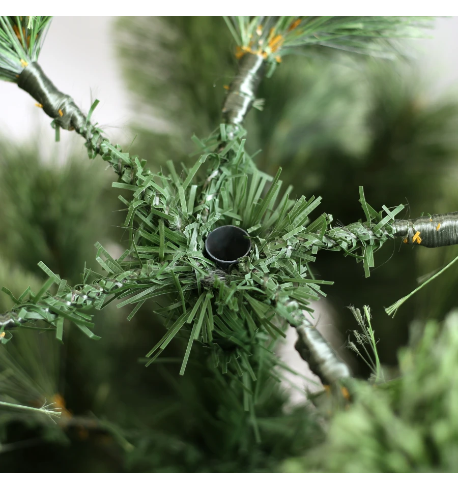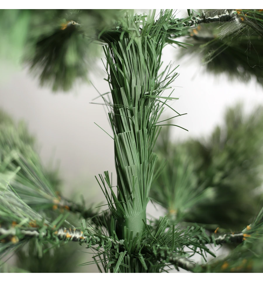 Штучна сосна подібна натуральному дереву, що росте в живій природі. Всі матеріали, екологічно чисті, мають протипожежні властивості. Великим плюсом штучної сосни є її довговічність, а складання конструкції не забере багато часу. Красиве і пишне новорічне дерево буде щорічно наповнювати будинок радістю і благополуччям в різдвяний період. Матеріал: ПВХ плівка шириною 12 см; метал; дріт. Висота: 180 см. Діаметр нижнього ряду: 126 см. Система складається з двох частин. Підставка сосни - це металева хрестовина з болтами, що закріплюють стовбур. Габарити: 1,80 м.