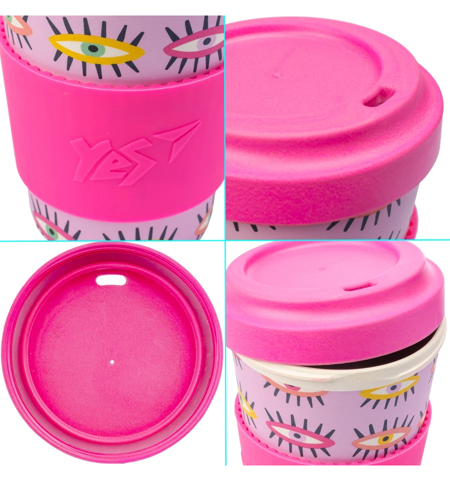 Яскравий, стильний, легкий, зручний, безпечний ... І ще багато характеристик стакана з бамбукового волокна торгової марки Yes! З цим стаканом завжди "добрий ранок" по дорозі на роботу або навчання, чудовий день і вечір, адже з собою улюблений напій в стильно оформленій склянці із продуманою до дрібниць конструкцією! Ударостійкий, тактильний корпус із силіконовим тримачем герметично закривається бамбуковою кришкою, укомплектованою ущільнювачем. Розмір: 14 х 9 см.