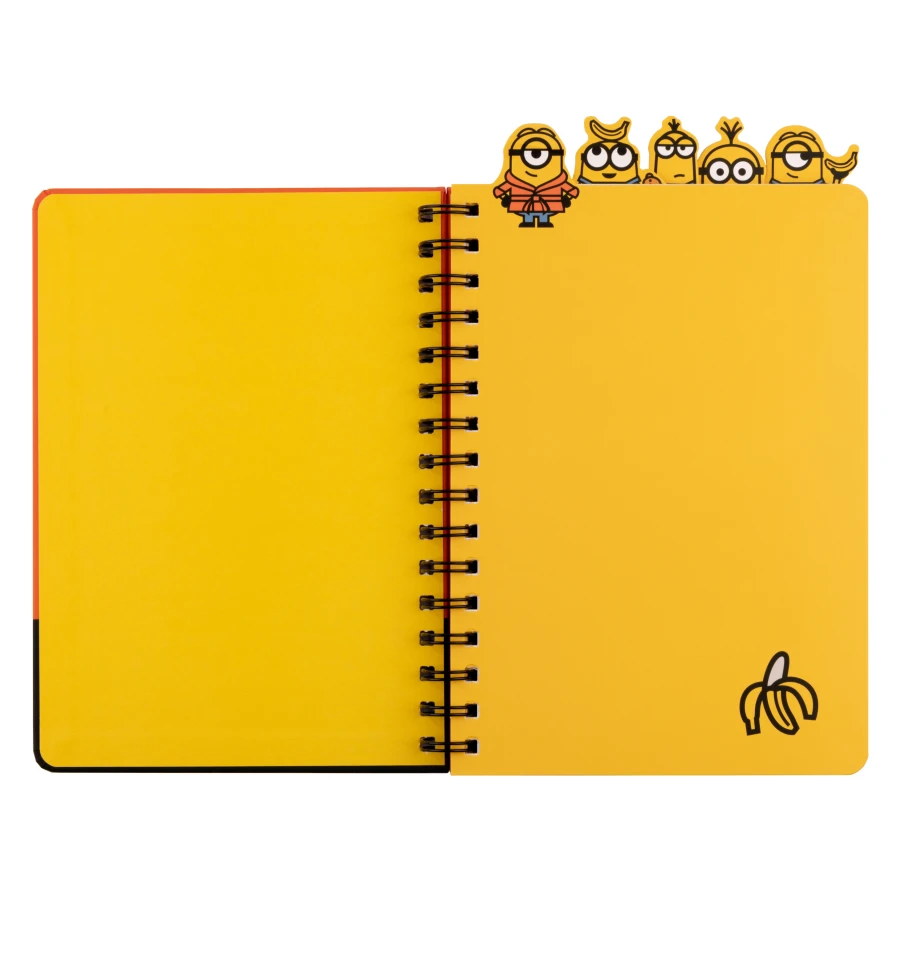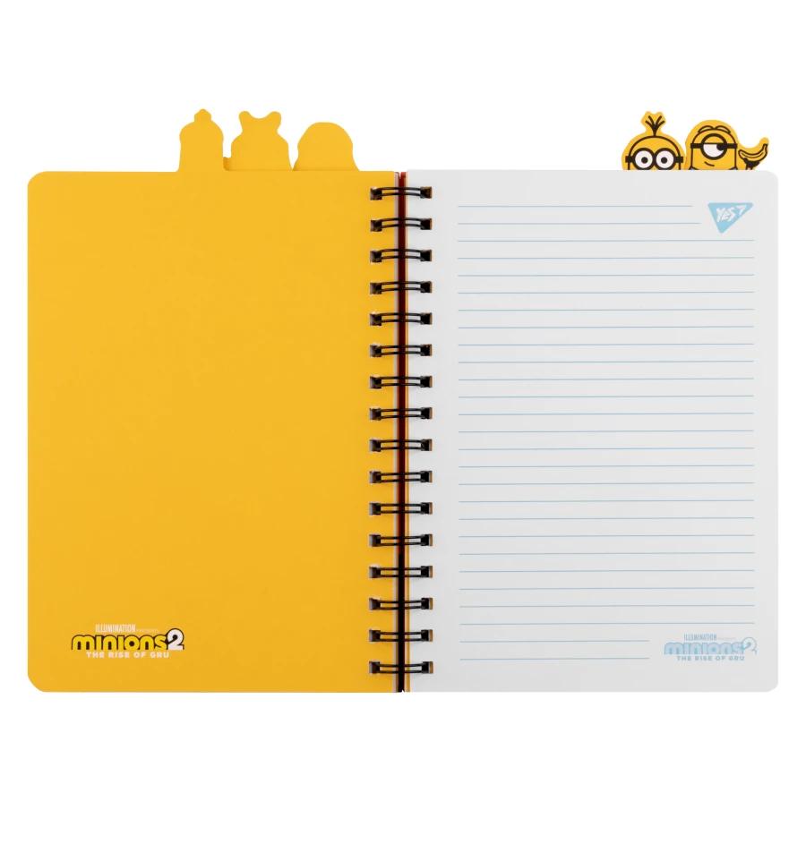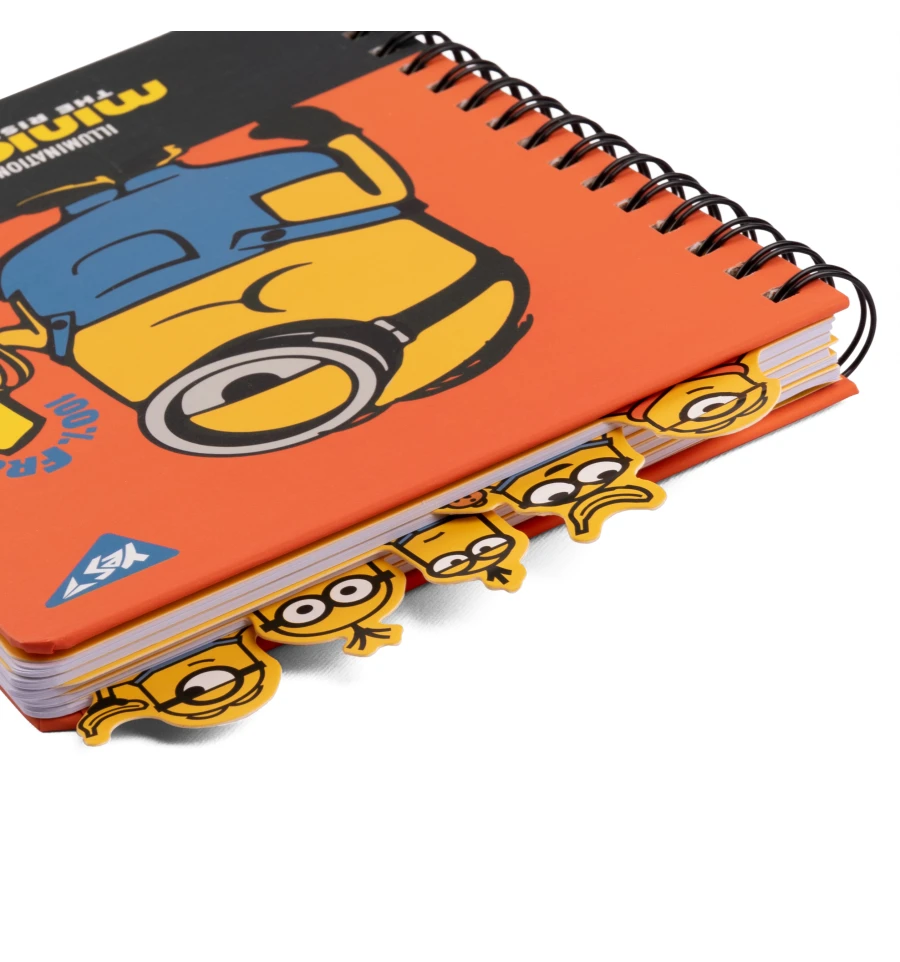 - Яскравий і красивий дизайн обкладинки, 4 картонні роздільника з кольоровими фігурними клапанами в тематичному дизайні "Minions"