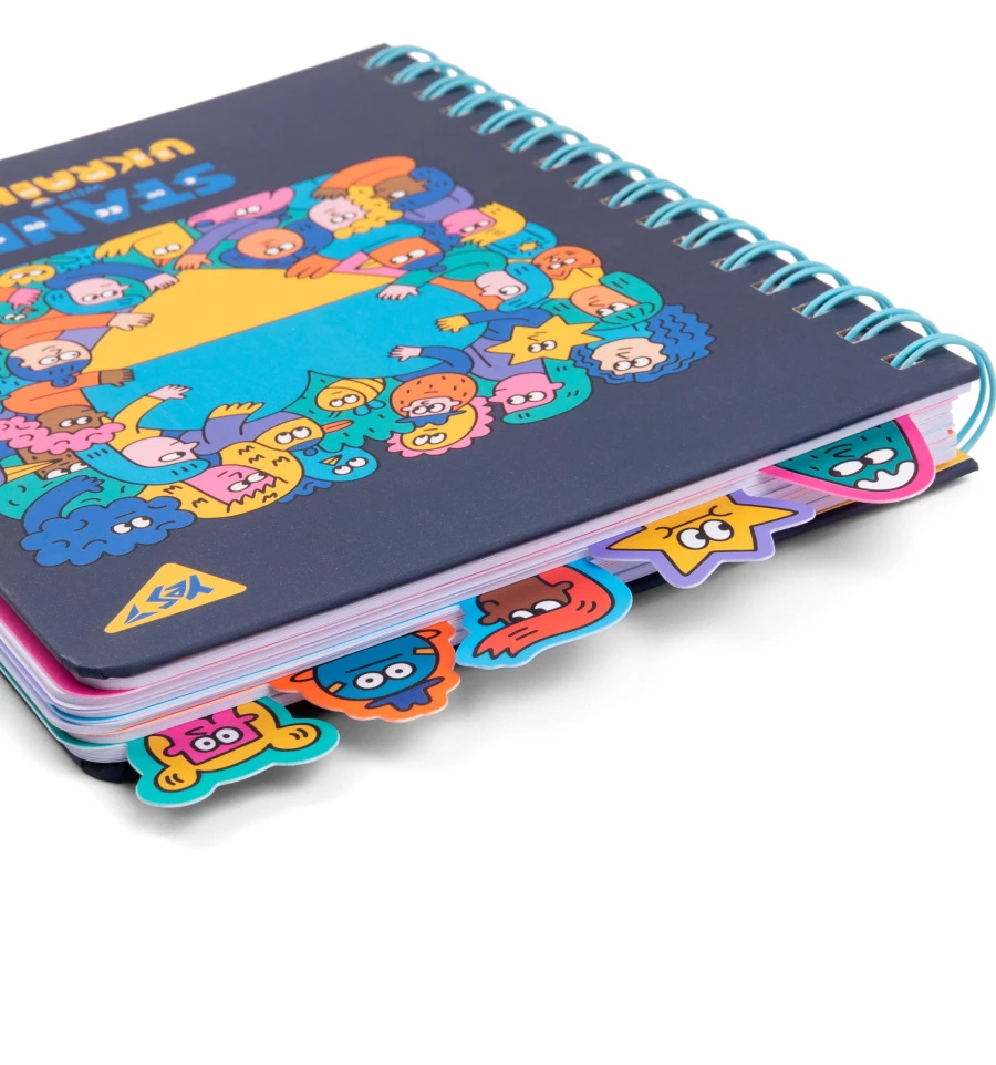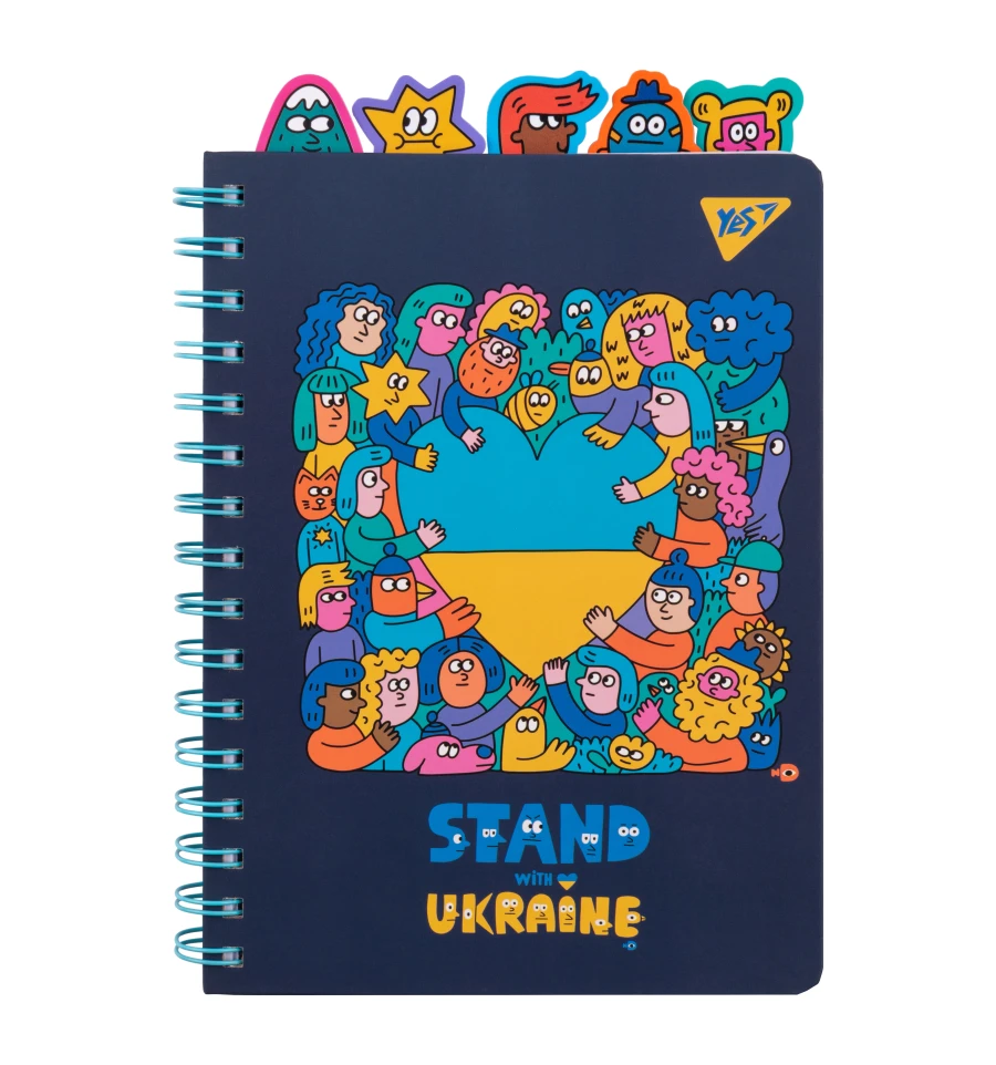 Блокнот Yes А5 96 аркушів на cпіралі із роздільниками Stand with Ukraine клітинка