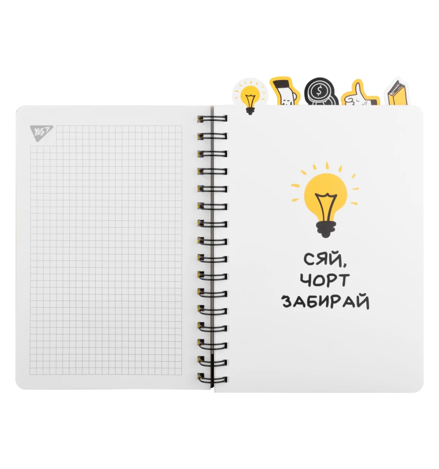 - Блокнот випускається з білосніжного офсету з круглими куточками