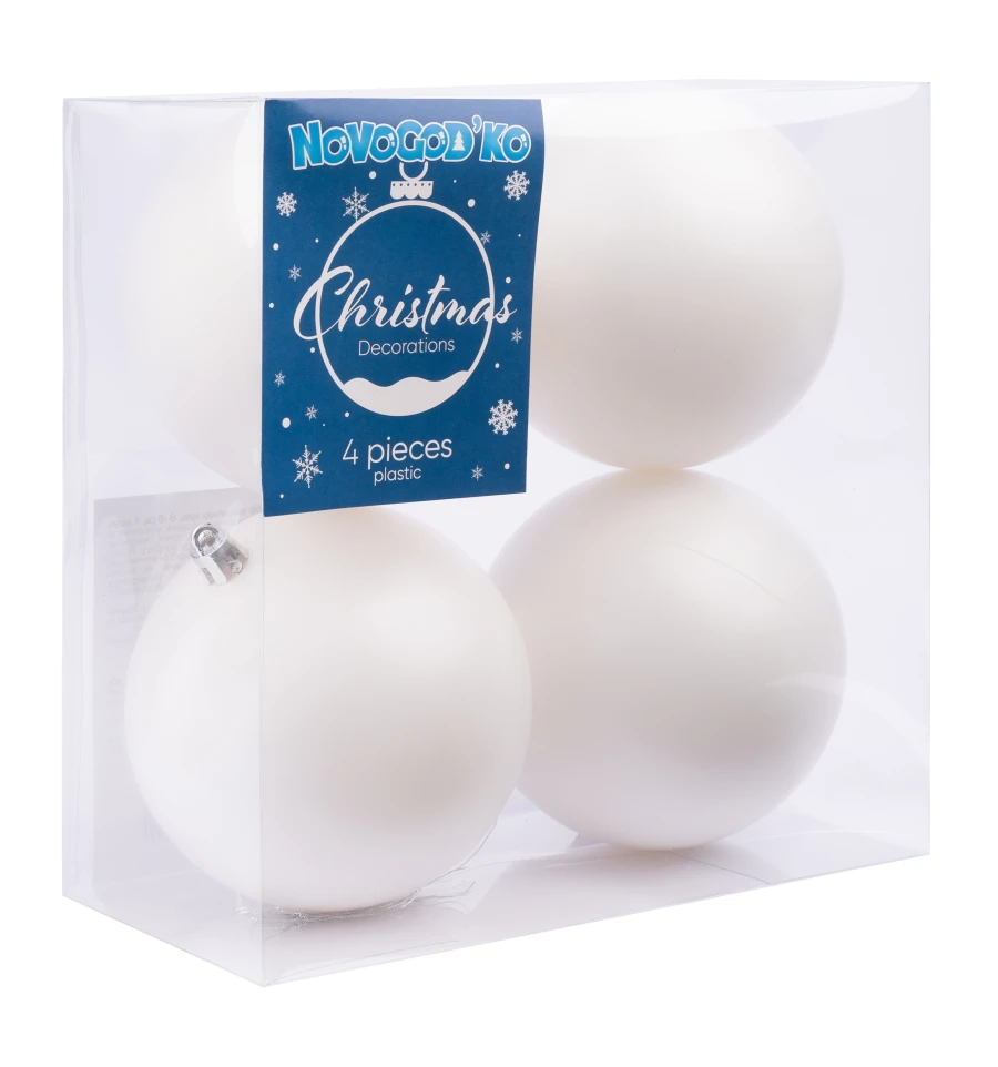 Набір новорічних куль Novogod‘ko, пластик, 10см, 4 шт/уп, білий матовий