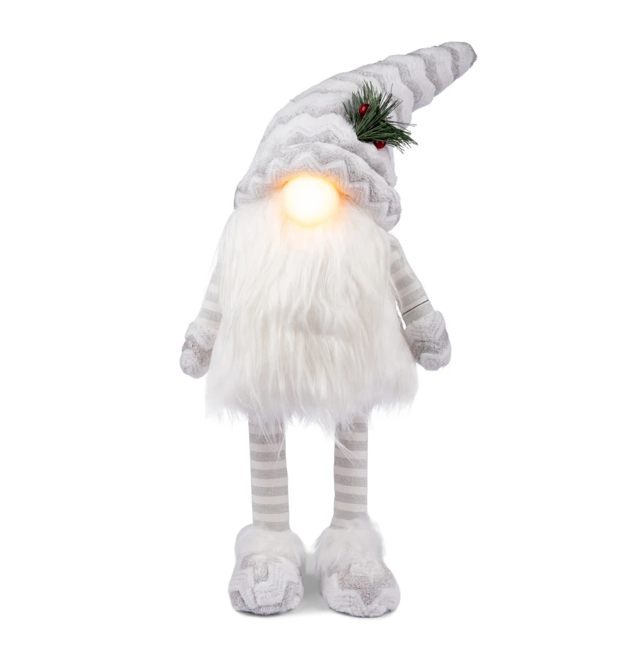 Особливістю цього гнома є вбудована в основі його ніжок пружина, завдяки якій він смішно підстрибує і похитується при кожному дотику. Особливе диво іграшці надає LED-носик, який м‘яко світиться теплим сяйвом. Варто лише включити підсвічування - і гном ніби оживає, додаючи в інтер‘єр затишне мерехтіння зимового дива. Підсвічування працює від двох батарей CR2032 (демонстраційні батареї вже встановлені), а акуратний вимикач захований під його пишною бородою, залишаючись повністю непомітним.