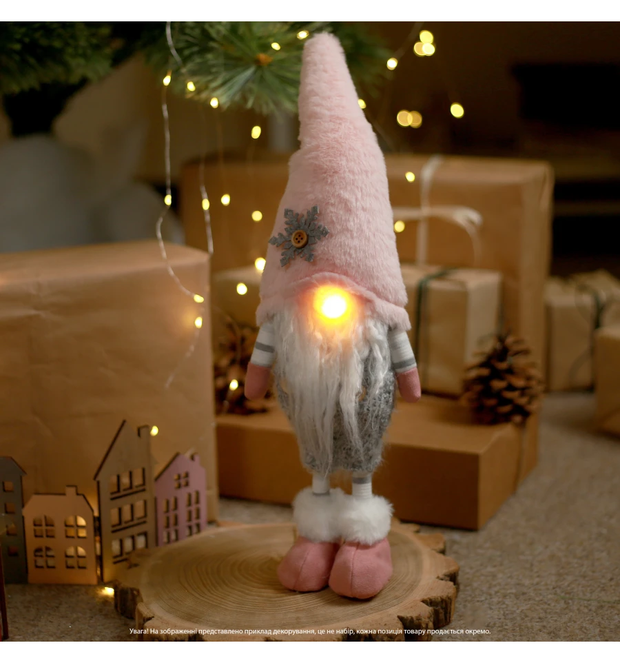 Гном у рожевому ковпаку з LED-носом ТМ Novogod‘ko подарує вашій оселі особливу атмосферу чарівництва та стане символом світлих бажань, душевного тепла та щасливих святкових моментів!