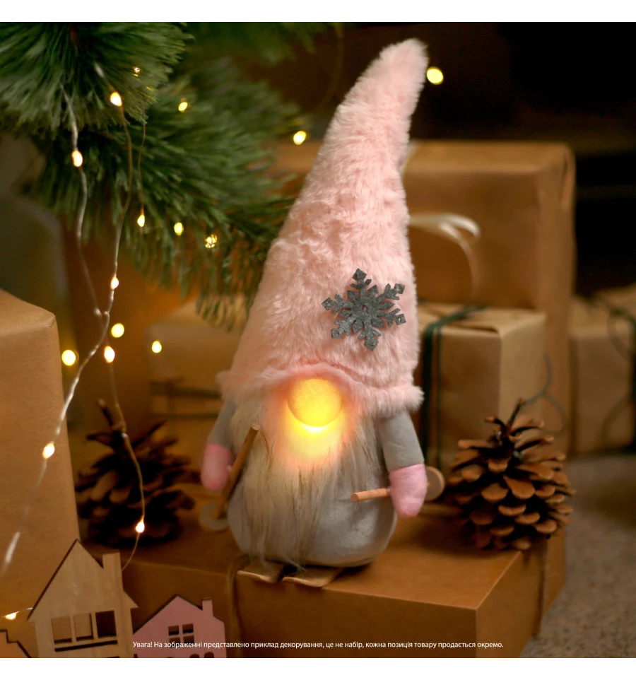 Гном лижник у рожевому ковпаку з LED-носом ТМ Novogod‘ko подарує вашій оселі особливу атмосферу чарівництва та стане символом світлих бажань, душевного тепла та щасливих святкових моментів!