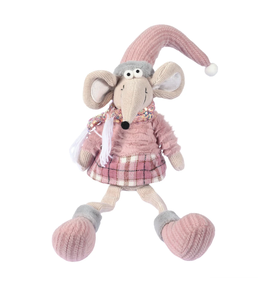 Новорічна Мишка – це чарівний та милий новорічний декор у рожевому вбранні та шапочці з помпоном, який миттєво створить атмосферу радості та свята у вашому будинку. Шикарний блискучий шарфик з мерехтливими рожевими паєтками - це справжня «родзинка» іграшки. Вони гарно переливаються у світлі гірлянд та свічок, додаючи мишеняті святкового блиску. Смішні вушка, доброзичлива мордочка роблять іграшку особливо чарівною, створюючи святковий образ, який сподобається і дітям, і дорослим.