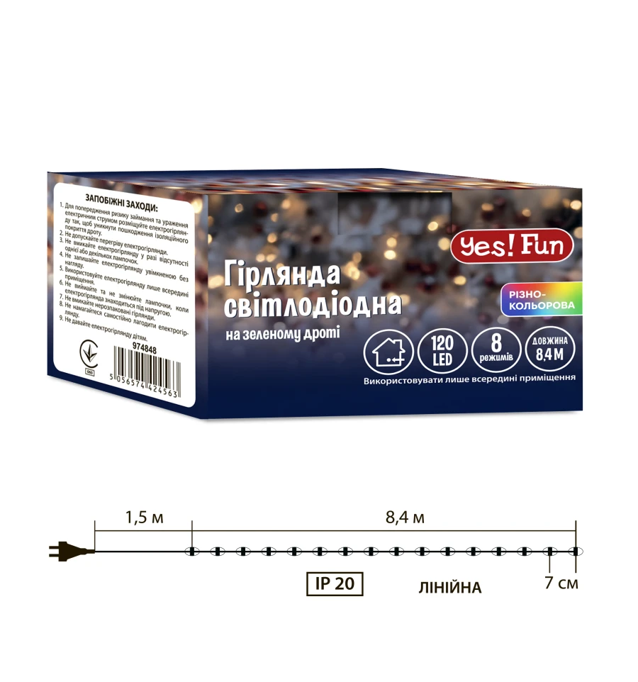 Гірлянда світлодіодна Yes! Fun Нитка - чудовий спосіб декорування до новорічних свят. Електрогірлянда використовується для прикраси новорічних ялинок та різдвяних композицій, створюючи затишну атмосферу та святковий настрій.