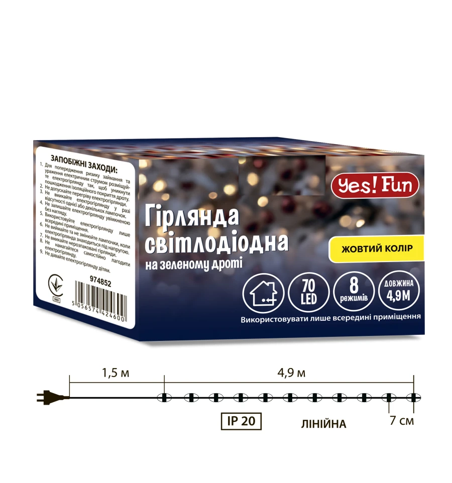 Гірлянда світлодіодна Yes! Fun Нитка - чудовий спосіб декорування до новорічних свят. Електрогірлянда використовується для прикраси новорічних ялинок та різдвяних композицій, створюючи затишну атмосферу та святковий настрій.