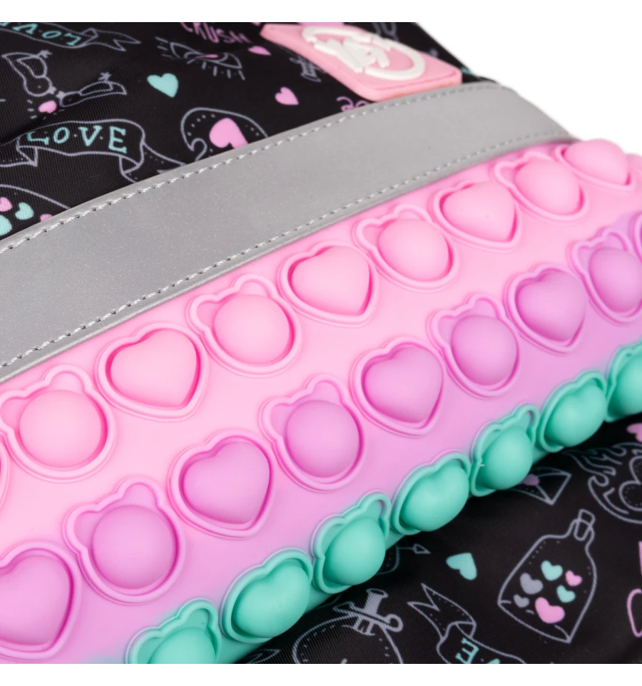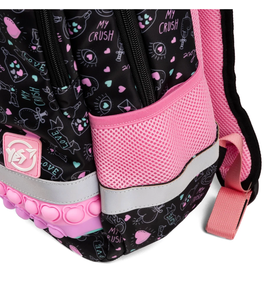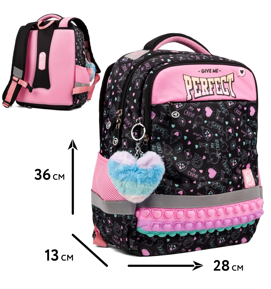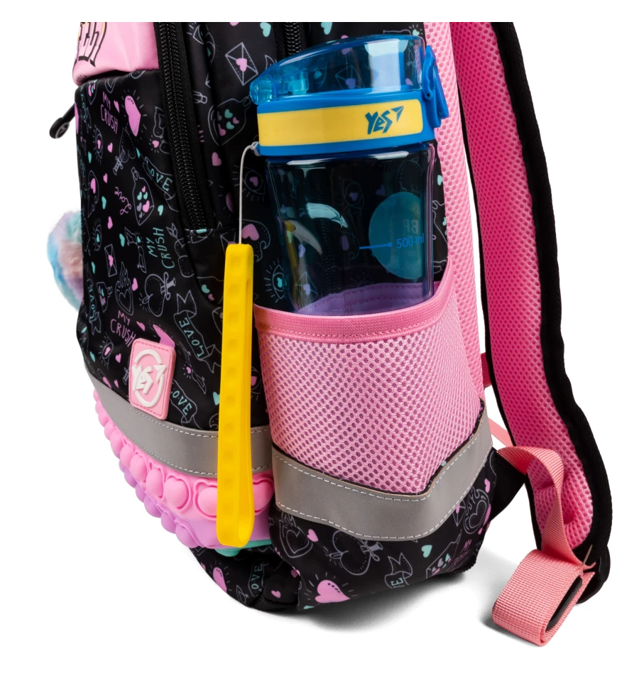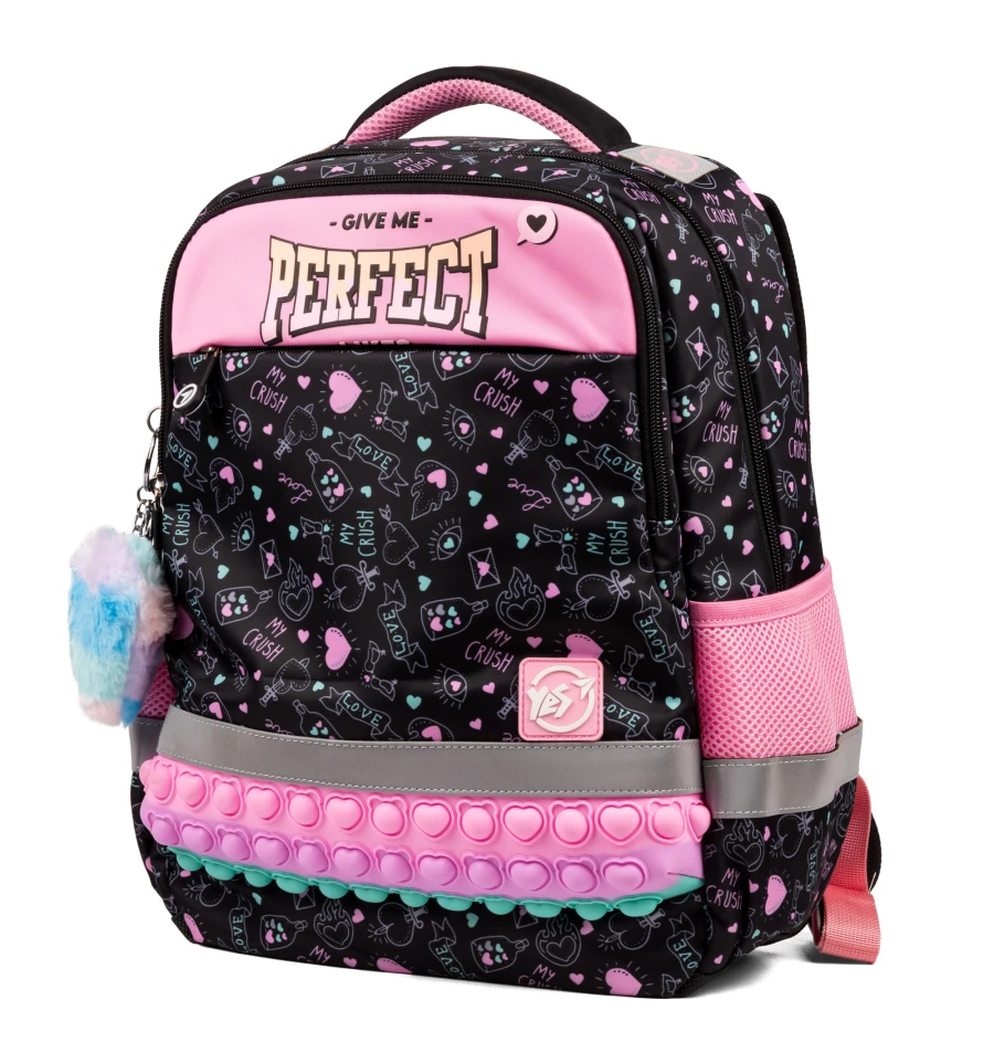 Завдяки контрастним яскравим кольорам, рюкзак Yes Perfect S-52 Ergo не залишить байдужою жодну маленьку модницю. Кожен елемент дизайну привертає увагу та створює виразний образ. А особлива декоративна вставка з ефектом pop-it надає рюкзаку неповторності та чарівності, викликаючи зацікавлення навіть у найвибагливіших дівчаток.