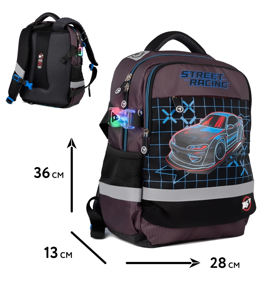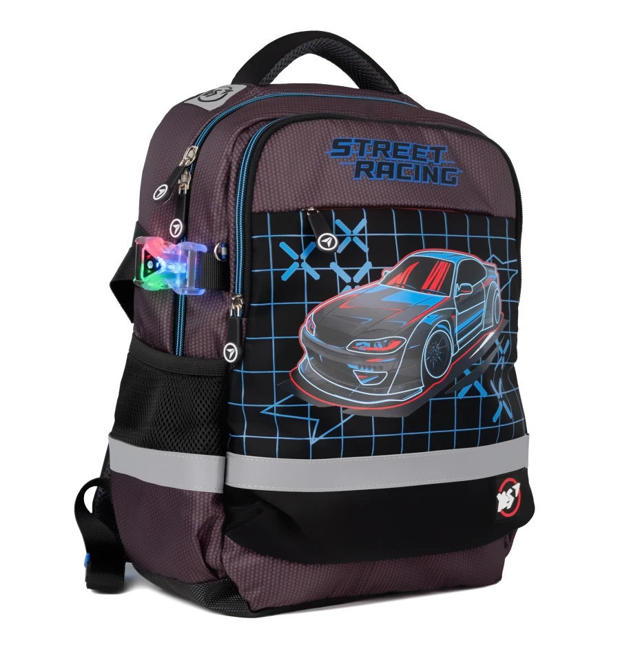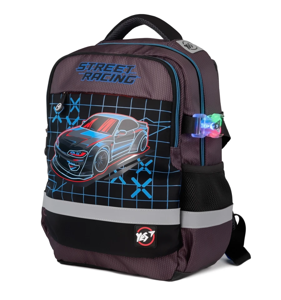 Модний дизайн рюкзака Yes Street Racing S-52 Ergo, незвичайні LED-застібки неодмінно привернуть увагу та дозволять бути "на стилі" юному пошановувачу швидкісних перегонів.