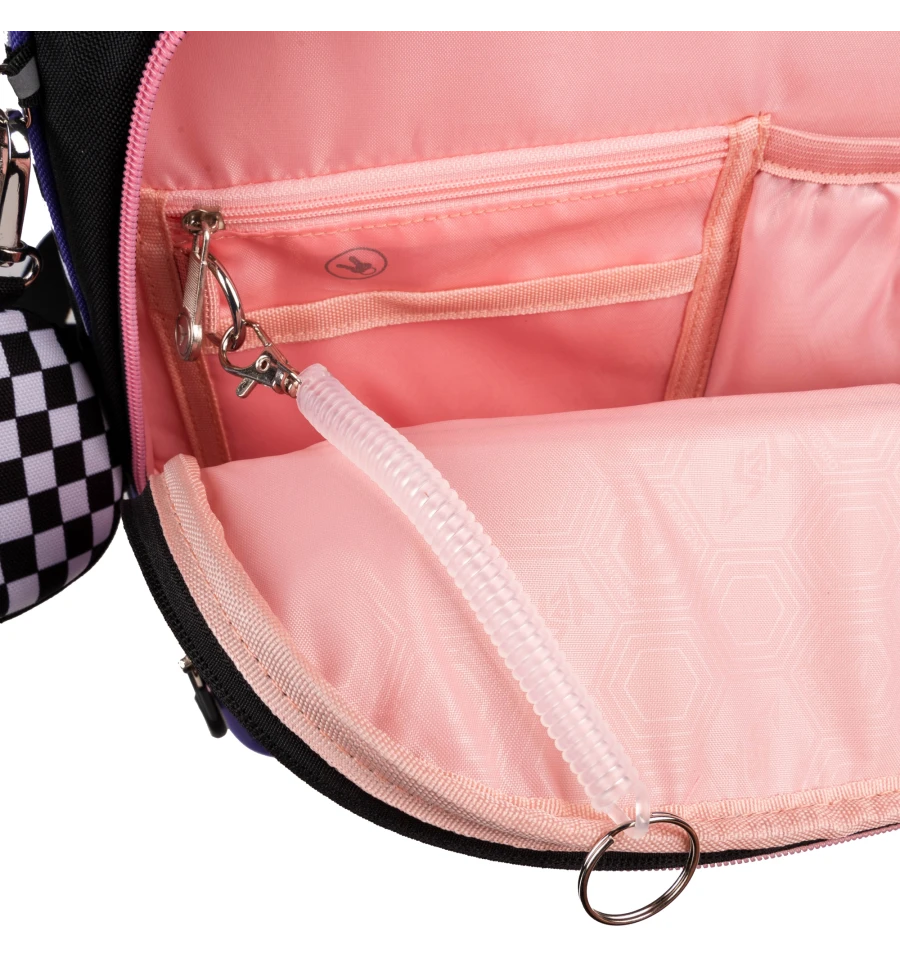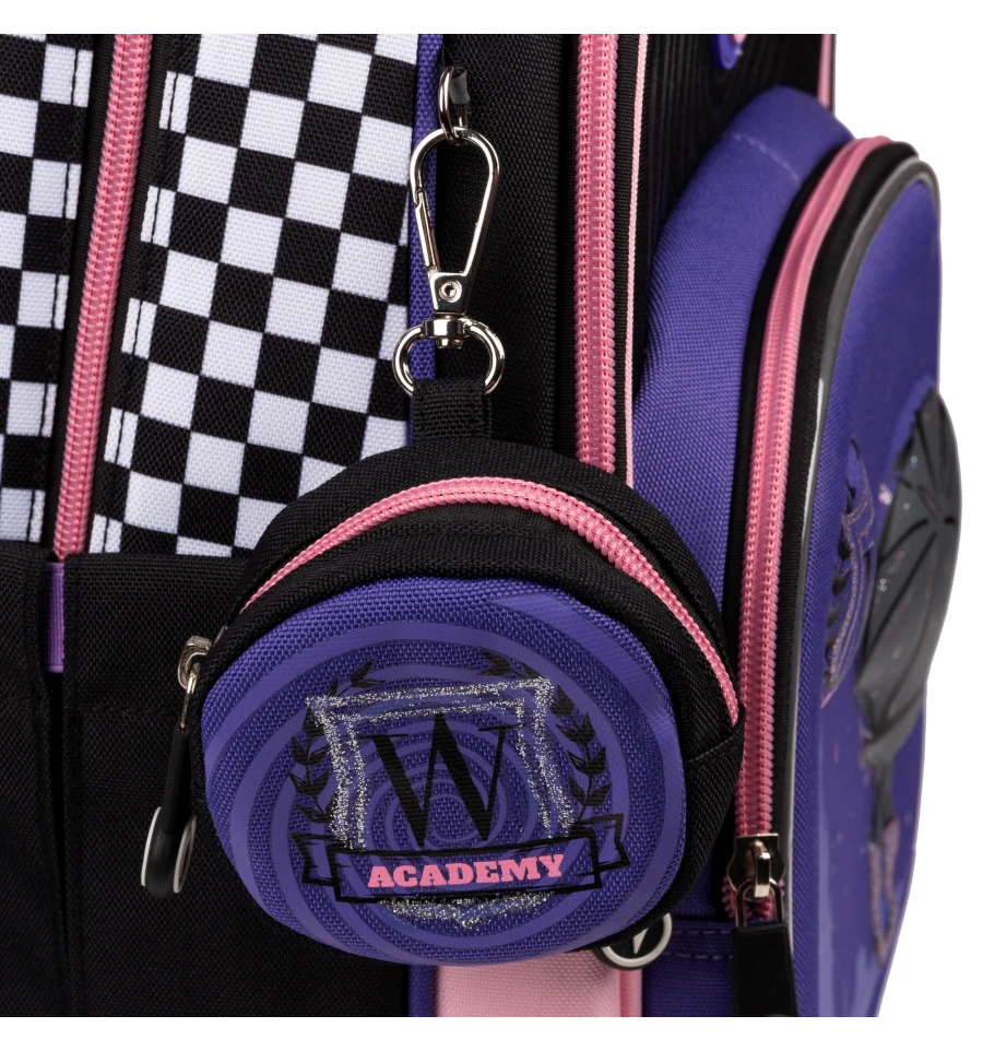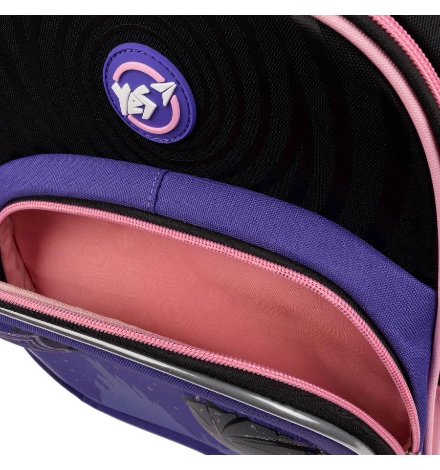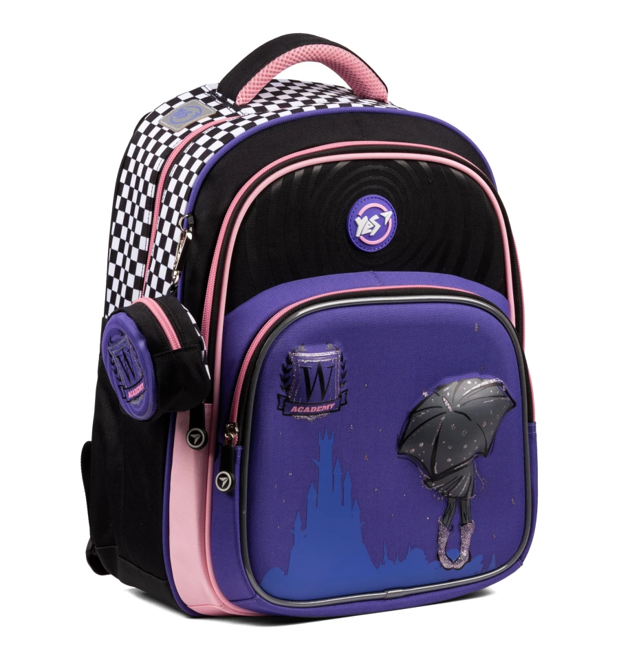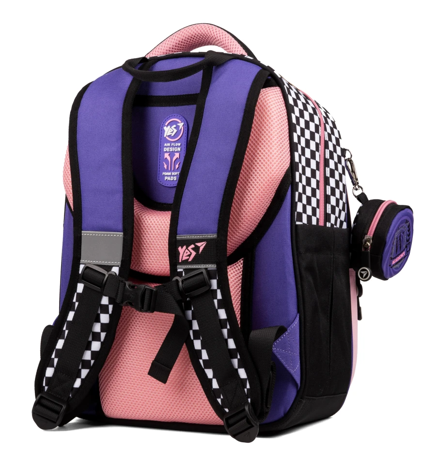 Яскравий фіолетовий колір, комбінація чорного та білого, а також об’ємний патерн з дівчинкою чудово поєднанні в шкільному напівкаркасному рюкзаку Yes Academy S-91! Гаманець-підвіска обов’язково знадобиться дівчинці у школі, в ньому можна тримати кишенькові гроші або дівочі секретики.