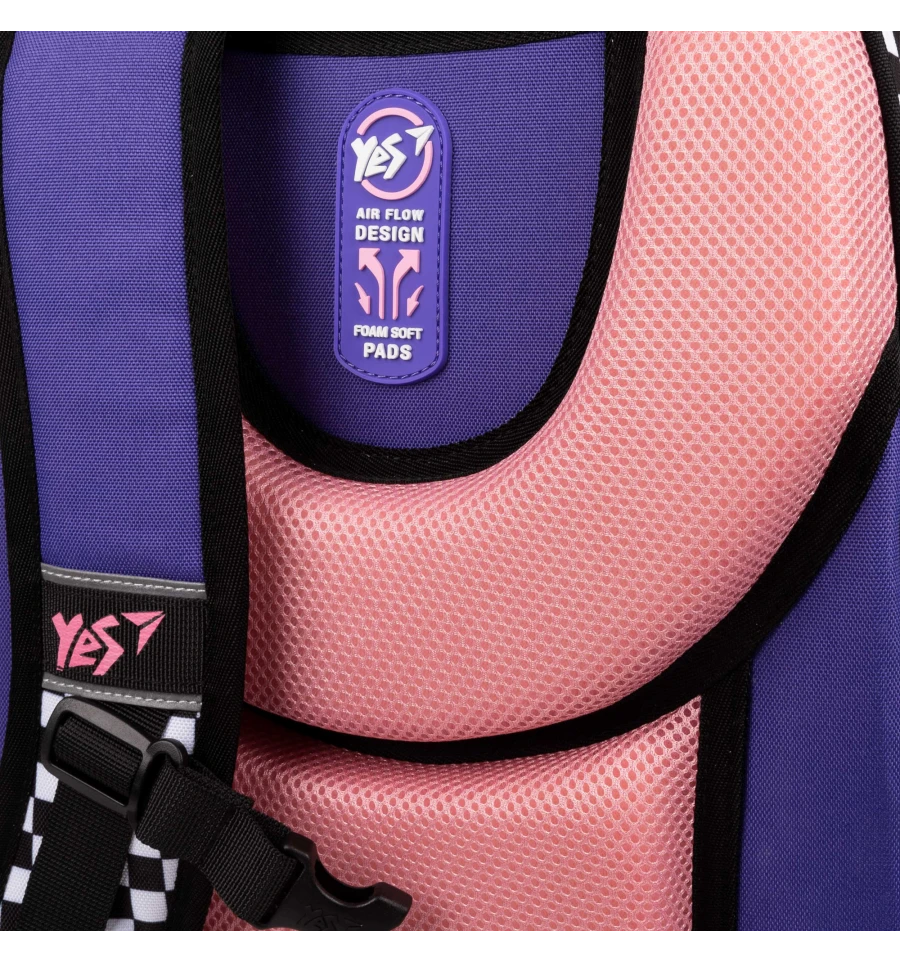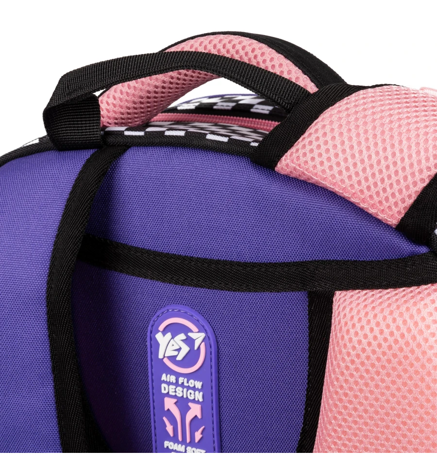 Ортопедична спинка рюкзака продумана до дрібниць і забезпечує рівномірне розподілення навантаження на всі відділи хребта. Пом’якшувальні подушечки розташовані таким чином, щоб масажний ефект здійснювався у найбільш напружених ділянках спини дитини для максимально комфортного носіння. Ортопедичні властивості спинки шкільного напівкаркасного рюкзака S-91 від бренду Yes закріплені патентом.
