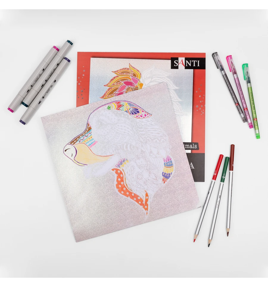Антистрес-розмальовки "Металік антистрес" з металізованим покриттям сторінок від ТМ SANTI - це Ваш особистий оазис миру і гармонії, куточок затишку і спокою, де кожен малюнок захоплює, створюючи умови, де зникають тривоги і турботи - це і є справжня магія.