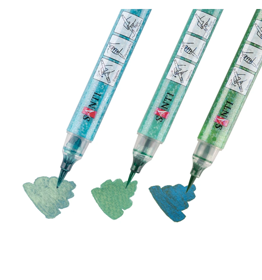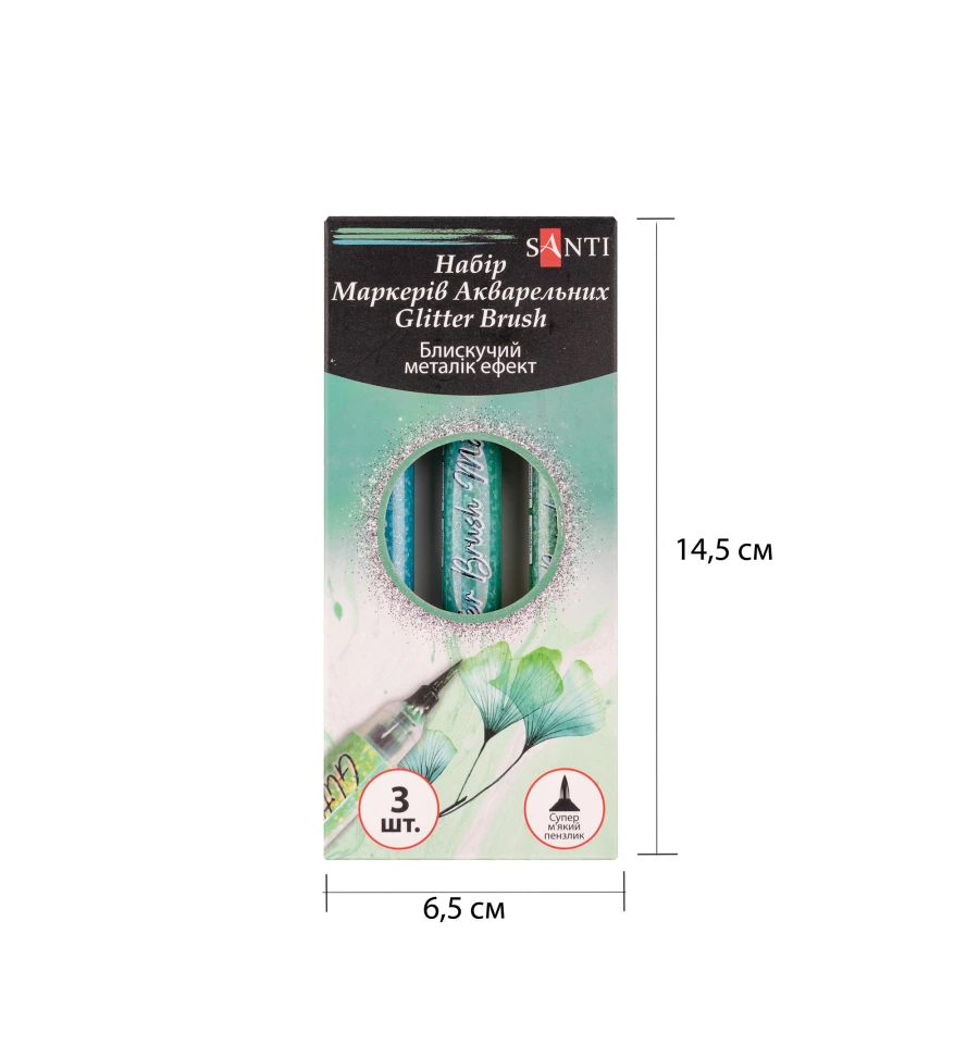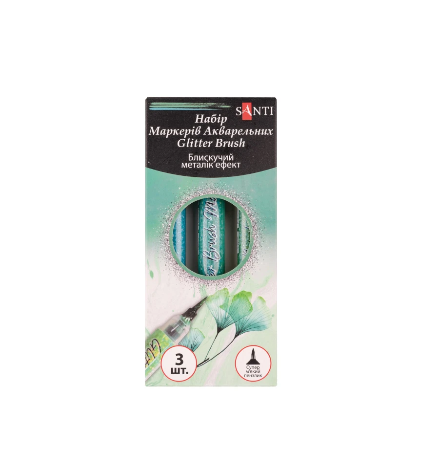 Набір маркерів акварельних SANTI Glitter Brush, відтінки зеленого, 3 шт/уп.