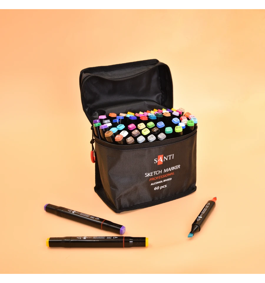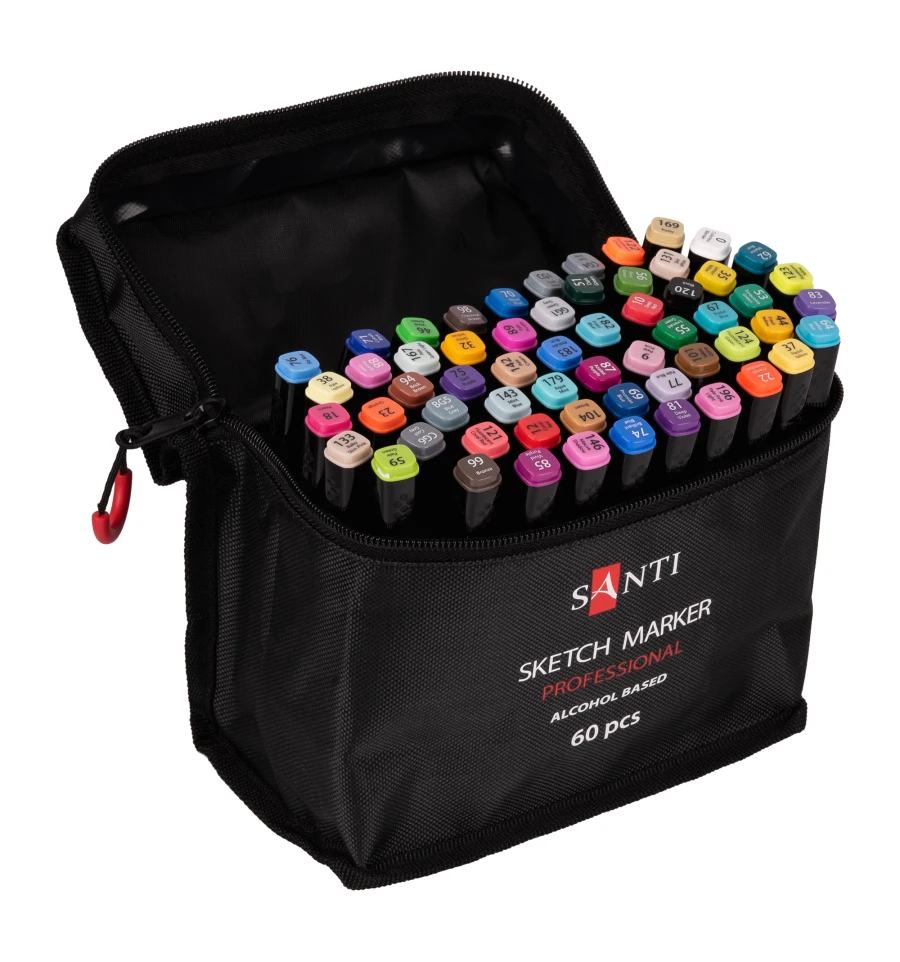 Набір спиртових маркерів ТМ SANTI підійде як початківцям, так і досвідченим художникам, дизайнерам, скетчерам та всім, хто цінує зручність та якість. Це чудове рішення для тих, хто займається творчістю у поїздках, на навчанні, у студії чи на пленері.