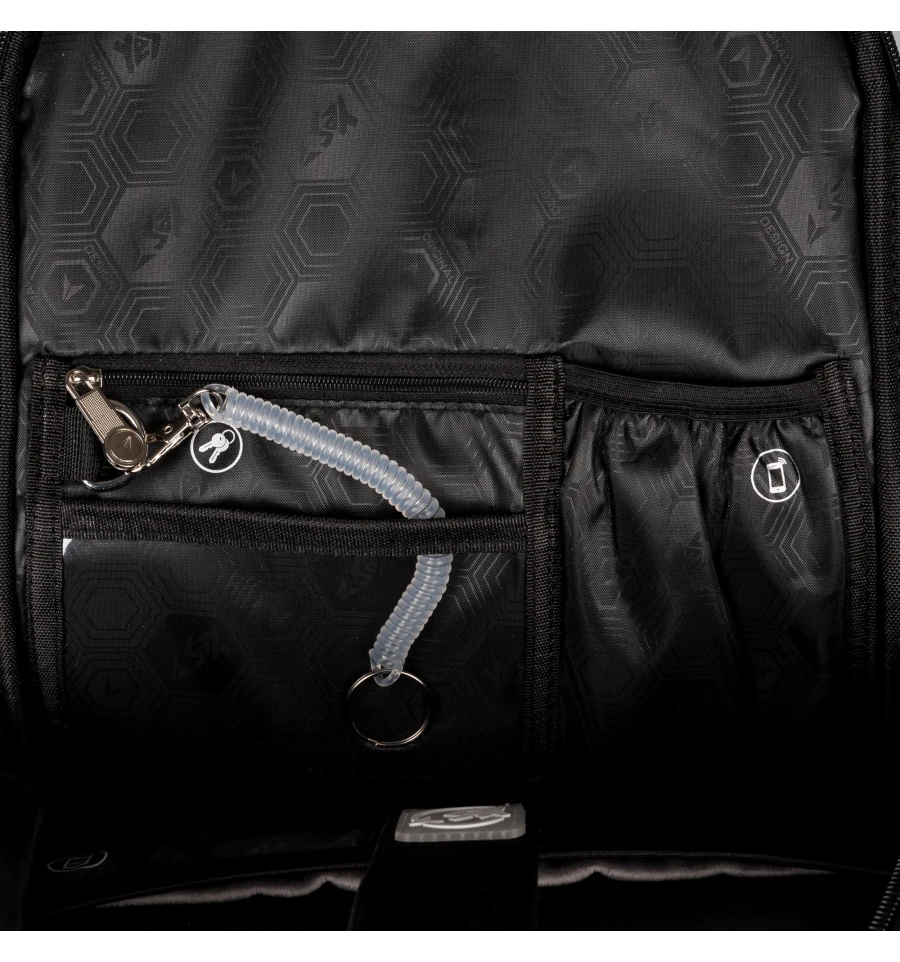 Рюкзак S-101 має 1 містке відділення з органайзером, що дозволяє легко розмістити підручники та зошити, а 2 передні та 2 бокові кишені допоможуть тримати у порядку шкільне приладдя та інші дрібні речі. Відкидне дно всередині рюкзака додає йому стійкості.
