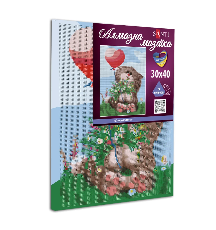 Алмазна мозаїка SANTI Котик з кулькою 30*40см на подрамнике.