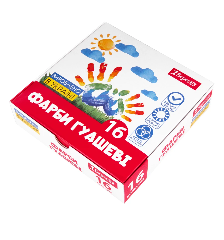 Фарби гуашеві 1Вересня, 16 кольорів по 20 мл
