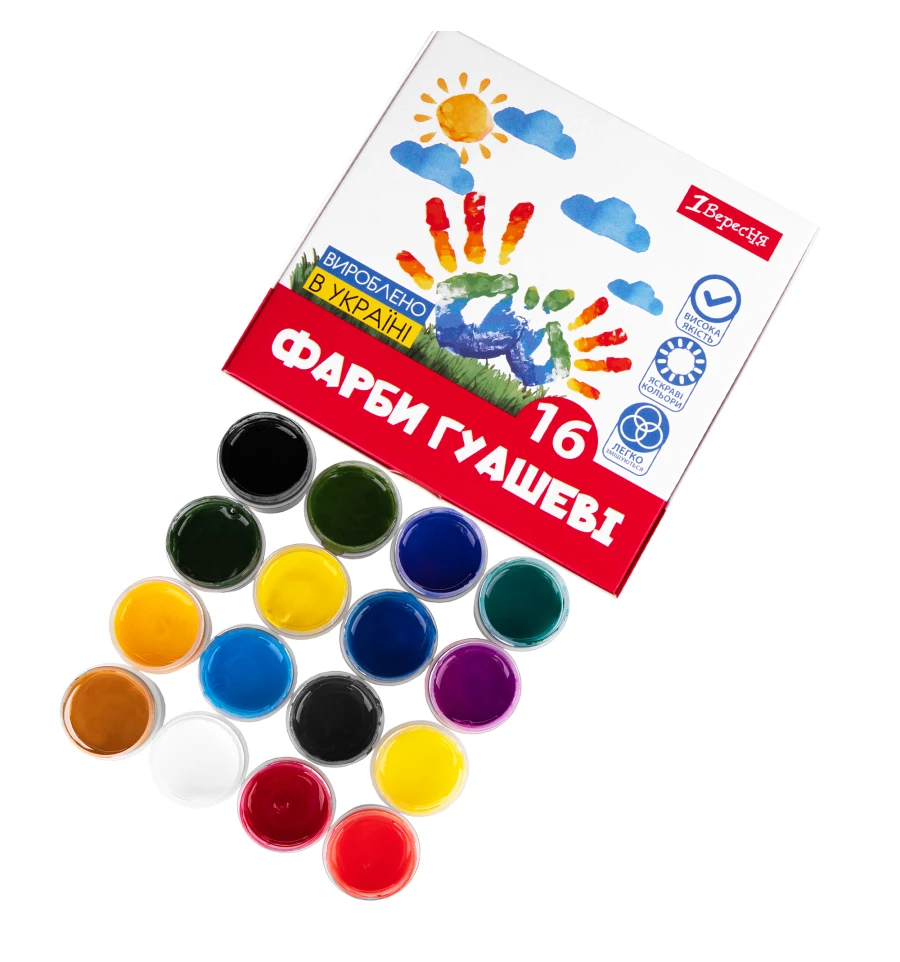 Довірте своїм юним митцям наш надійний засіб самовираження – гуашеві фарби 1Вересня, які привнесуть веселку до їхнього творчого світу!