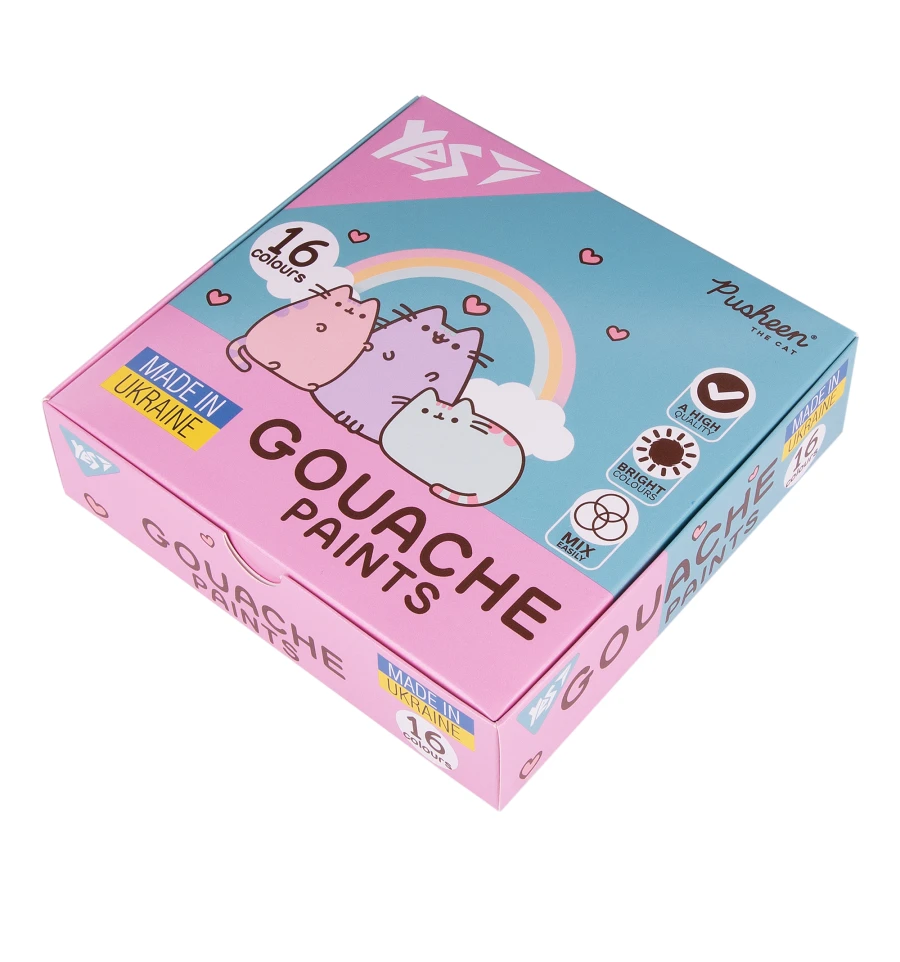 Фарби гуашеві Yes "Pusheen", 16 кольорів по 20 мл