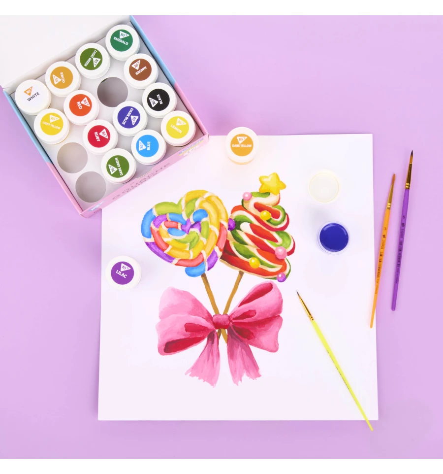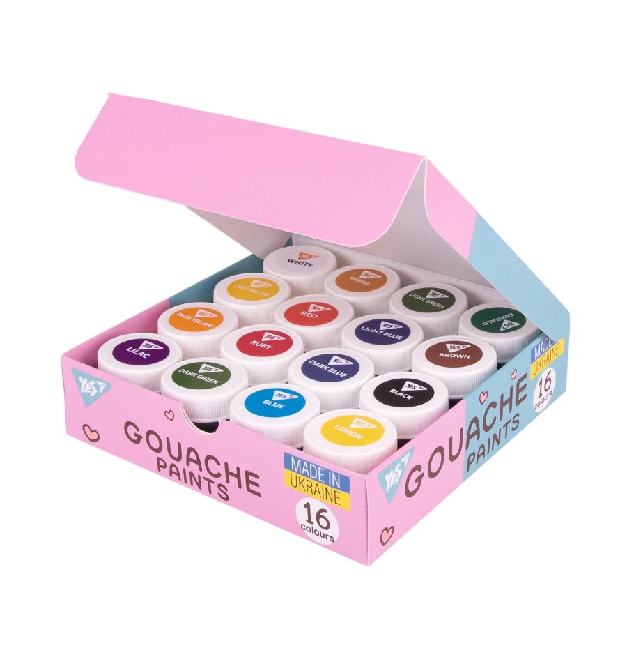 Набір із 16 насичених кольорів, відмінно підходить для творчості школярів.