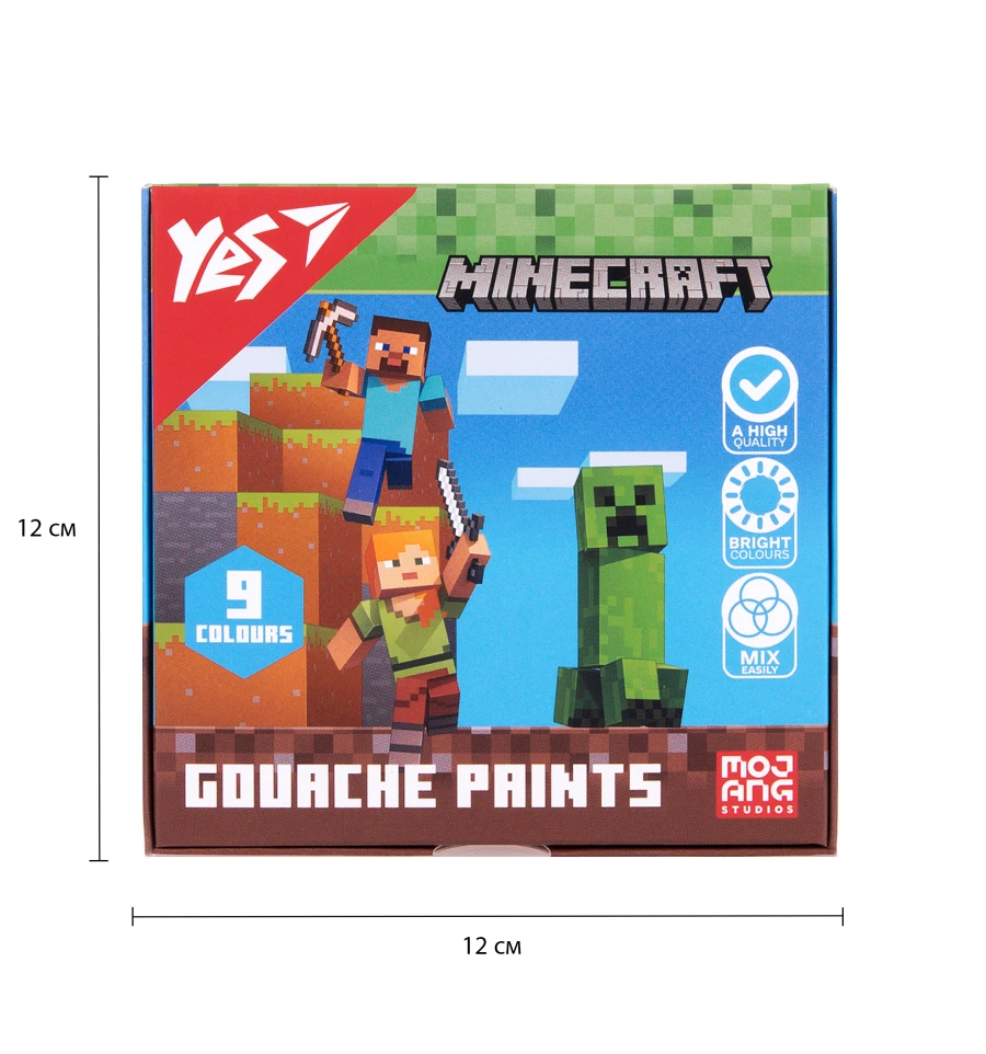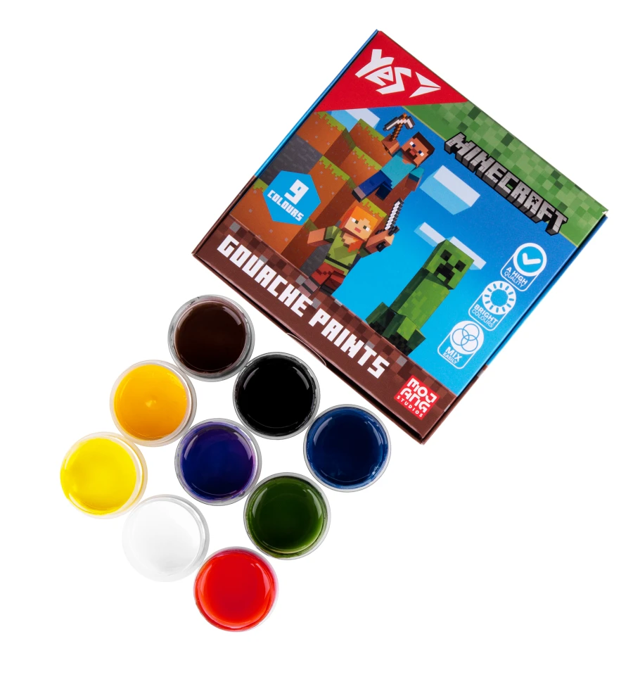 Фарби гуашеві Yes "Minecraft", 9 кольорів по 20 мл