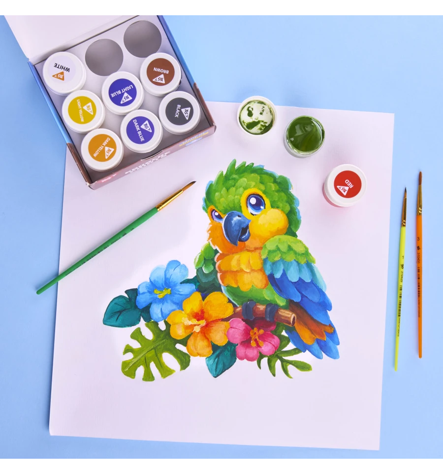 Легкість використання: оптимальна консистенція та однорідність, високопігментований склад забезпечує яскравість та насиченість кольору, добре змішуються, дозволяючи отримувати нові насичені кольори та відтінки без додаткових зусиль. Відмінно малюють по паперу, картону та по дереву. Легко змивається з рук та одягу. Герметична упаковка запобігає висиханню фарби.