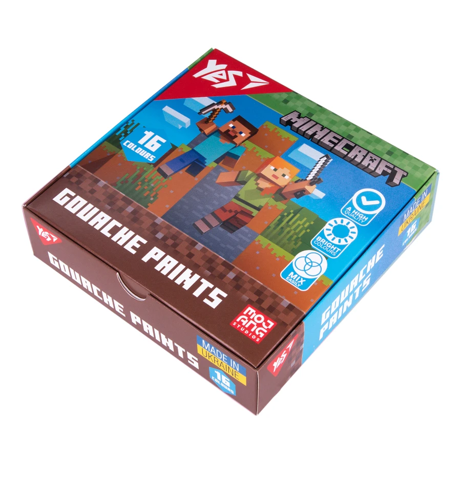 Гуашеві фарби Yes "Minecraft" ідеально підходять для використання на заняттях з малювання у школах, художніх гуртках та вдома. Створюйте яскраві шедеври разом із фарбами Yes "Minecraft"!