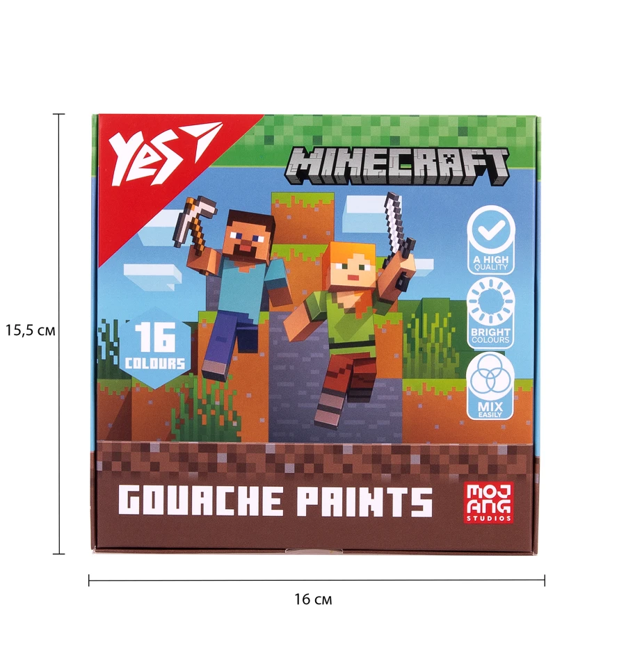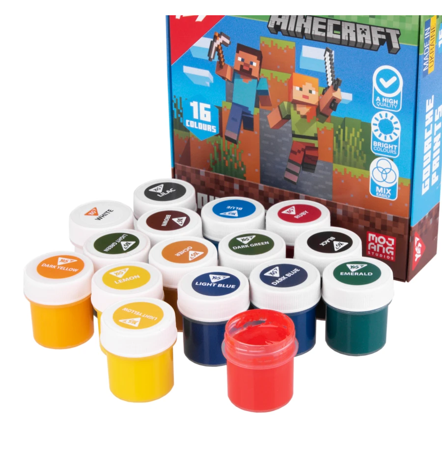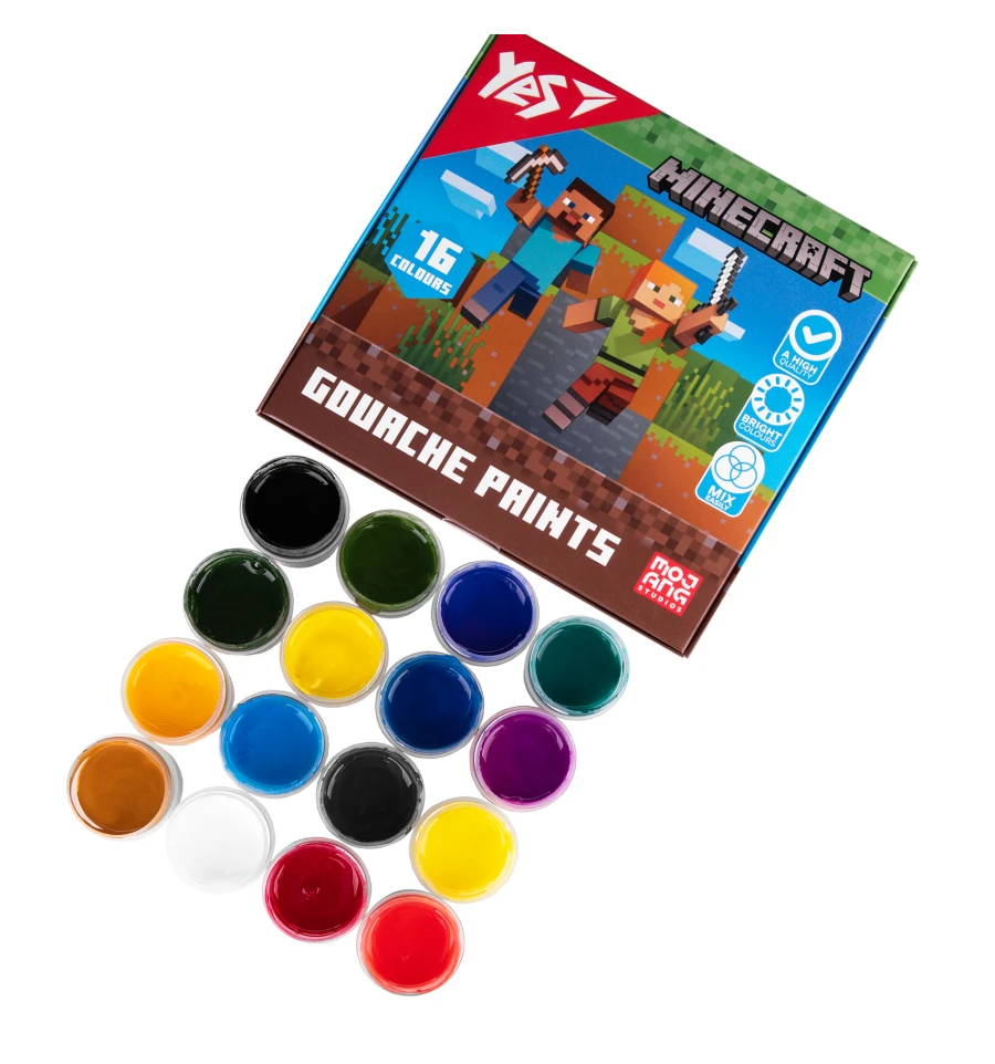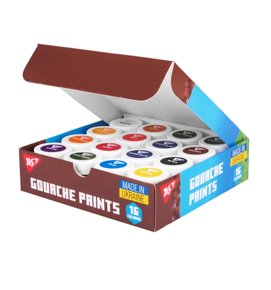 Фарби гуашеві Yes "Minecraft", 16 кольорів по 20 мл