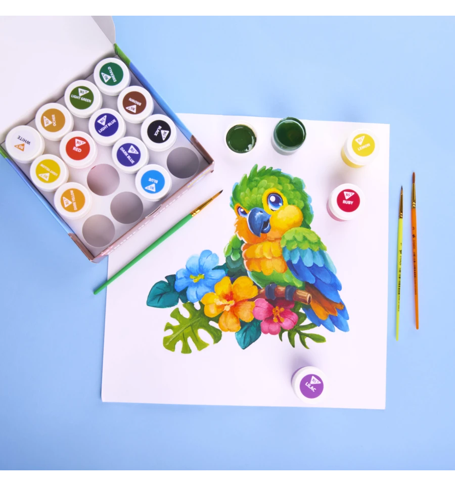 Легкість використання: оптимальна консистенція та однорідність, високопігментований склад забезпечує яскравість та насиченість кольору, добре змішуються, дозволяючи отримувати нові насичені кольори та відтінки без додаткових зусиль. Відмінно малюють по паперу, картону та по дереву. Легко змивається з рук та одягу. Герметична упаковка запобігає висиханню фарби.