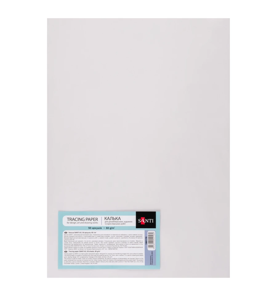 Калька від бренду SANTI – це тонкий напівпрозорий папір з гладкою поверхнею, який використовують для створення на ньому копій малюнків та креслень.