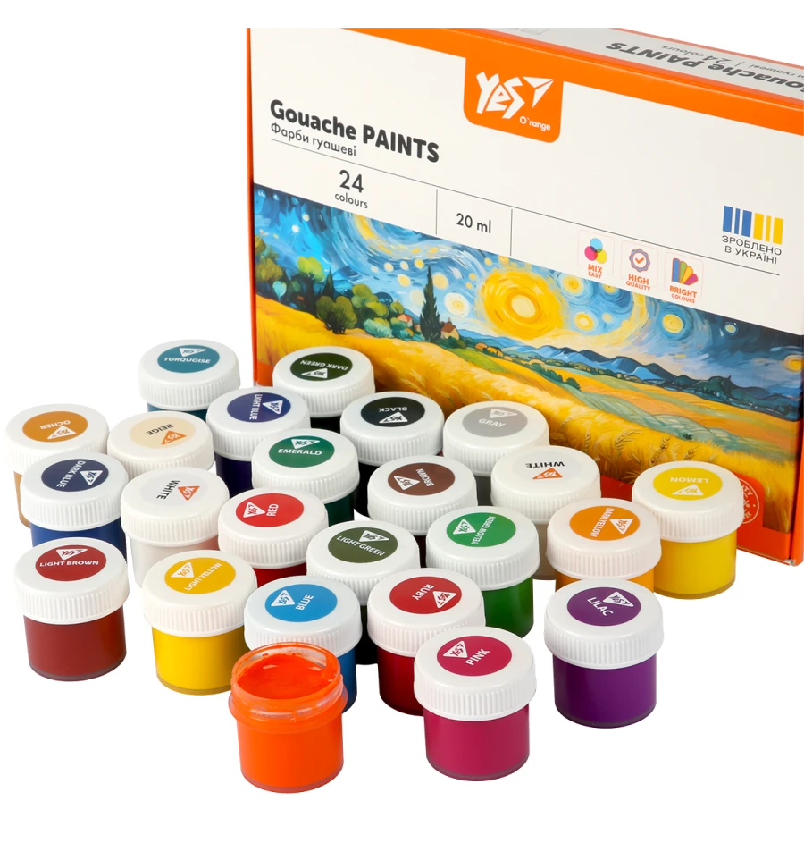 Гуашеві фарби Yes Orange Line ідеально підходять для використання на заняттях з малювання в школах, художніх гуртках і вдома. Створюйте яскраві шедеврі разом із фарбами Yes Orange Line!