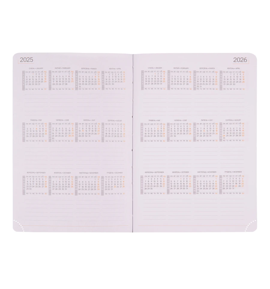 Паперовий блок продуманий до дрібниць для комфортного щоденного користування. Він налічує 320 сторінок, що забезпечує достатньо простору для щоденних записів, планів і нотаток. Папір щільністю 80 г/м² дозволяє комфортно писати ручкою чи олівцем без просвічування. Колір блоку – білий. Це універсальне рішення для чітких та контрастних записів. Підходить для ділових нотаток і лаконічного стилю. Закруглені кути паперового блока не лише додають стильного вигляду, а й запобігають швидкому зношенню сторінок. Це практичне рішення для збереження ділового записника охайним у щоденному користуванні. Перфоровані кути паперового блока дозволяють легко маркувати актуальну сторінку. Це зручний функціональний елемент, що допомагає швидко орієнтуватися у записах та тримати планування під контролем. Кольоровий паперовий зріз додає дизайнерського акценту та візуальної виразності. Стильне рішення для тих, хто цінує оригінальність.
