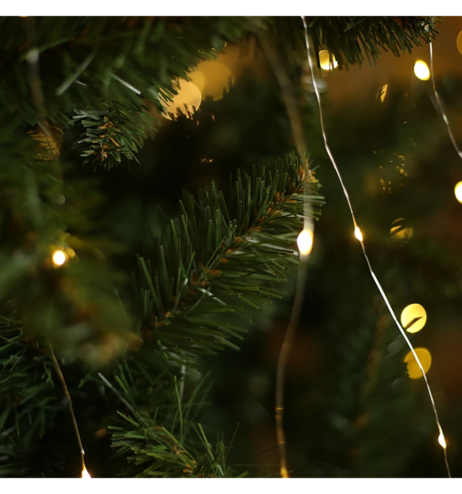 Гілочки до стовбура ялинки кріпляться за допомогою лавсанової нитки, яка надає їй більш естетичного та натурального вигляду. Гілочки не осипаються, мають в своїй основі міцний гнучкий дріт, що дозволяє формувати та регулювати пишність форм самостійно. Гілочки легко повертати в початковий вид для зручного зберігання.