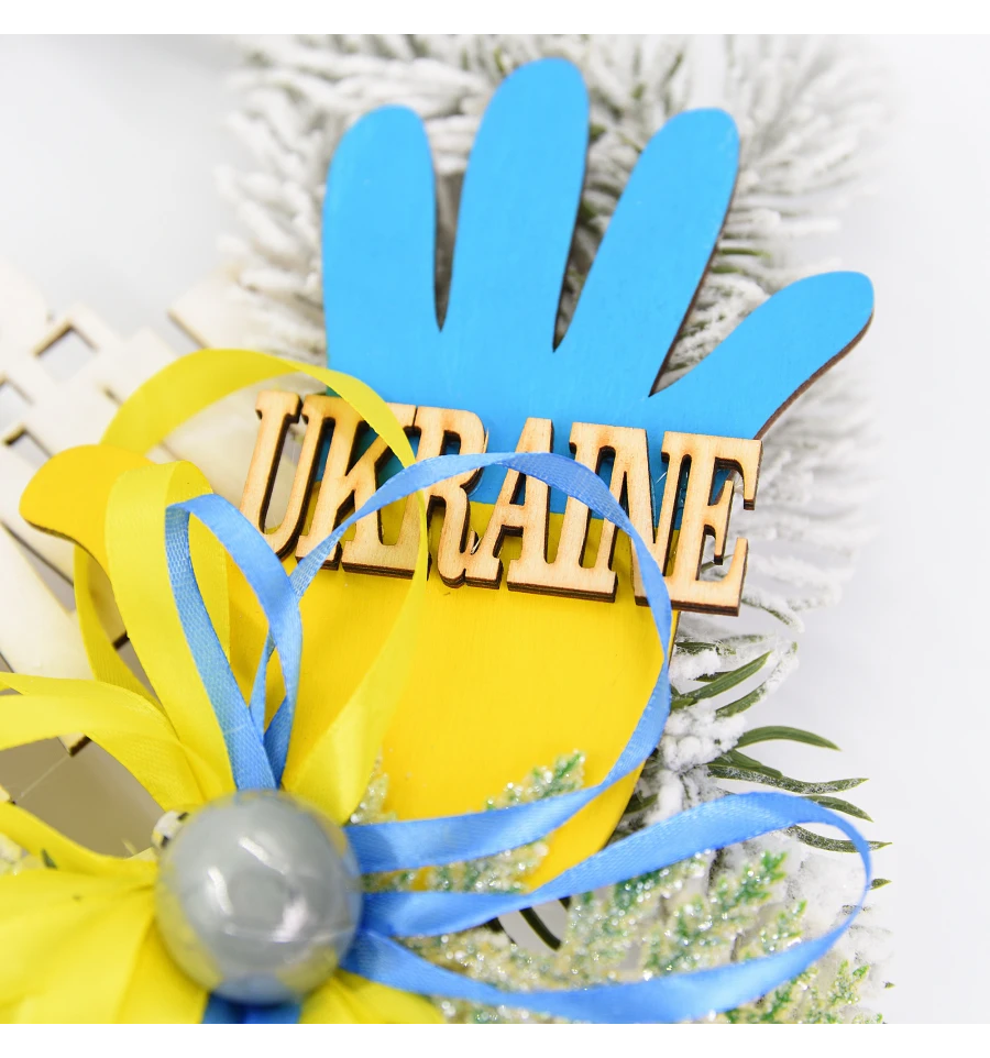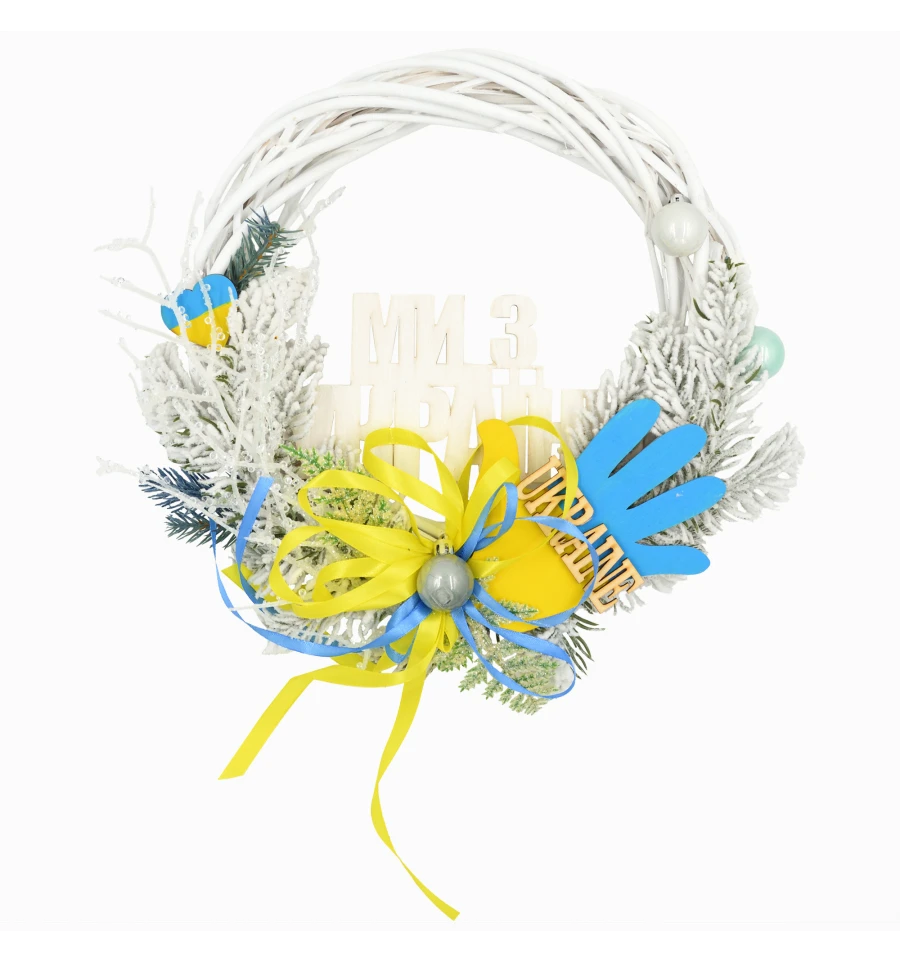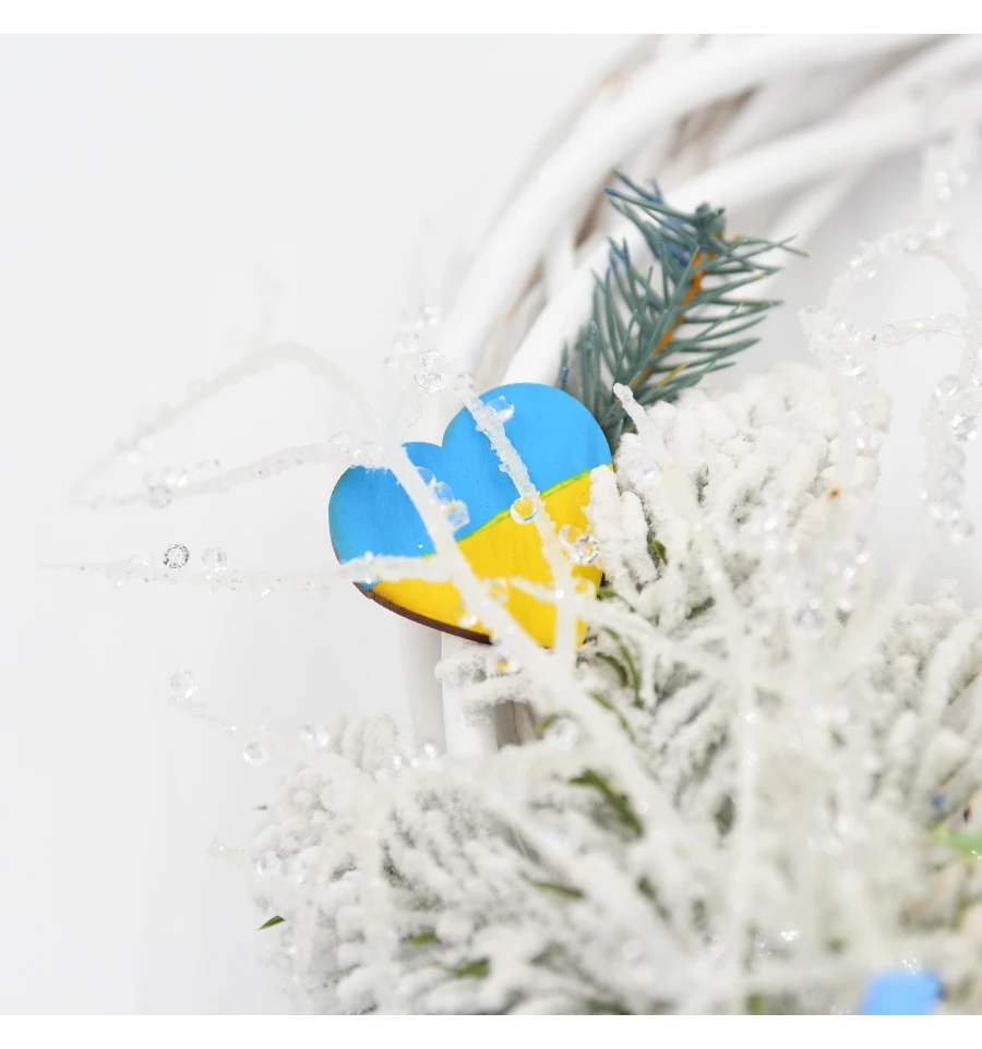 Вінок зі штучної хвої YES! Fun «Перемога» діаметром 30 см. прикрашений яскравими кулями та декоративними гілочками.