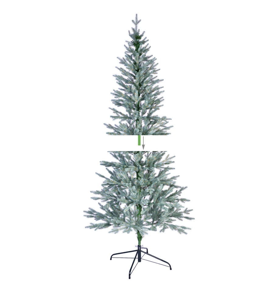 Гілочки до стовбура ялинки кріпляться за допомогою лавсанової нитки, яка надає їй більш естетичного та натурального вигляду. Гілочки не осипаються, мають в своїй основі міцний гнучкий дріт, що дозволяє формувати та регулювати пишність форм самостійно. Гілочки легко повертати в початковий вид для зручного зберігання.
