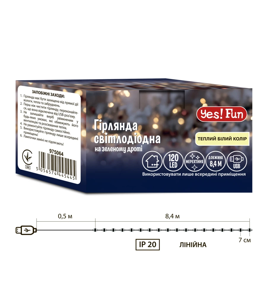 Гірлянда світлодіодна Yes! Fun Нитка - чудовий спосіб декорування до новорічних свят. Електрогірлянда використовується для прикраси новорічних ялинок та різдвяних композицій, створюючи затишну атмосферу та святковий настрій.