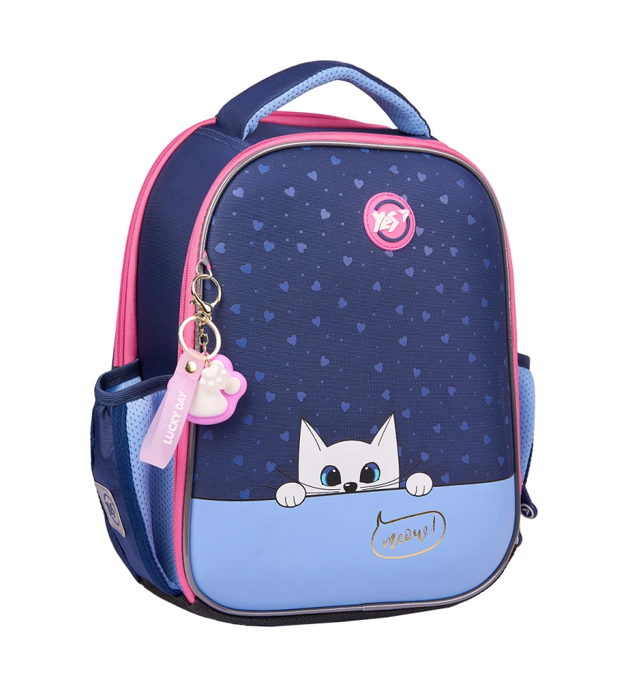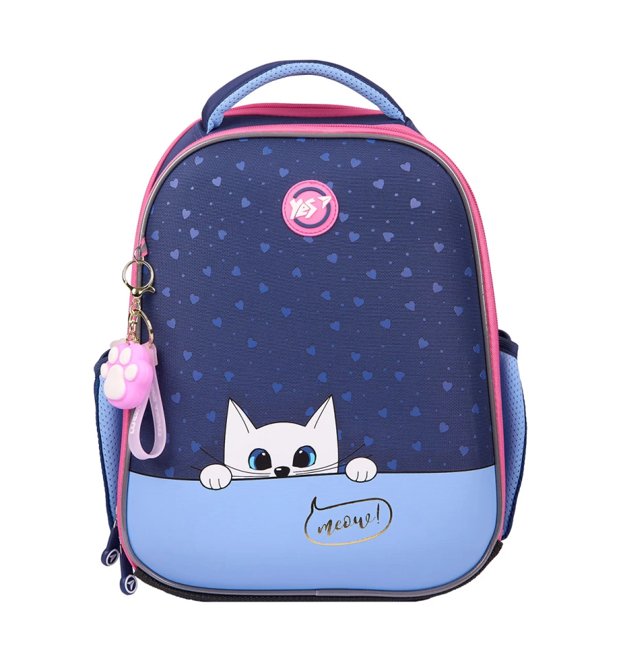 Каркасний рюкзака H-100 Meow-Meow від бренда YES створений спеціально для дівчаток, які дуже люблять котиків. В дизайні використана техніка «фольга». Брелок у вигляді лапки доповнює образ.