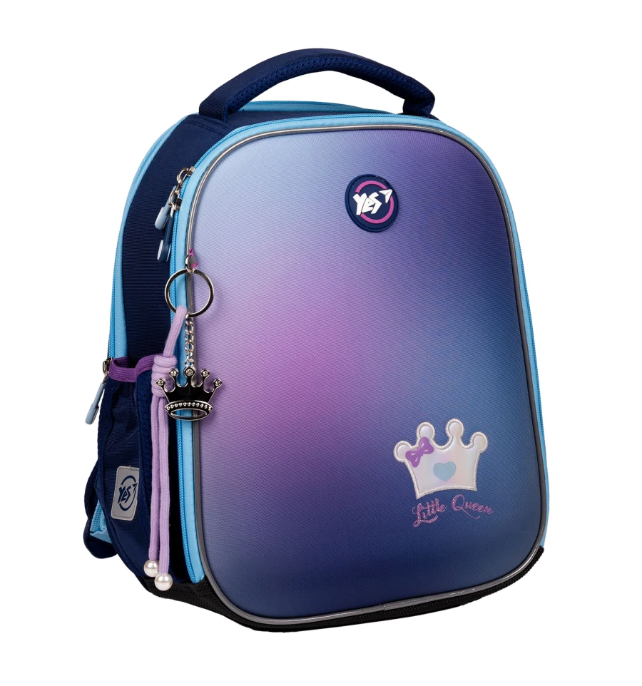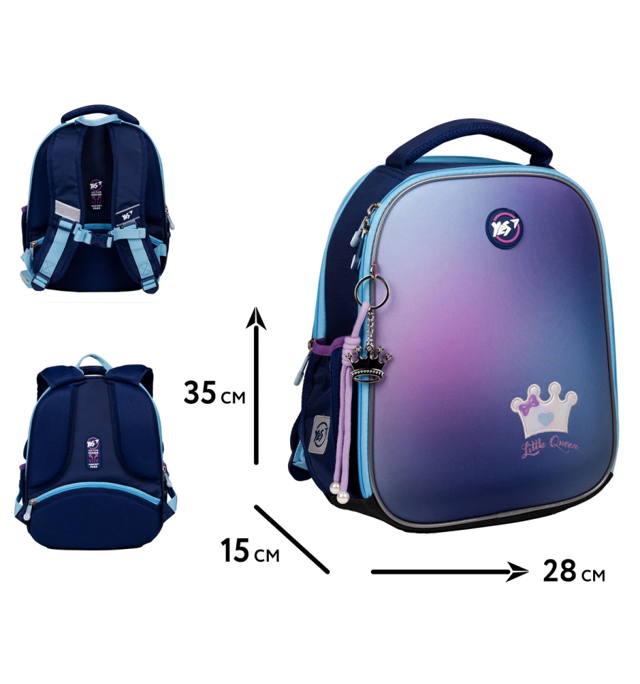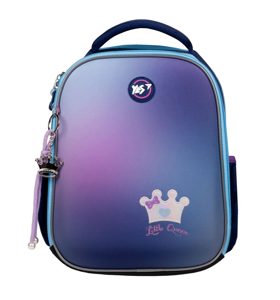 Дизайн каркасного рюкзака H-100 Little Queen від бренда YES створений спеціально для маленьких принцес. Нашивка у формі корони та використання глітера – все, що подобається маленьким леді.
