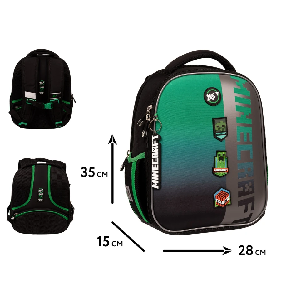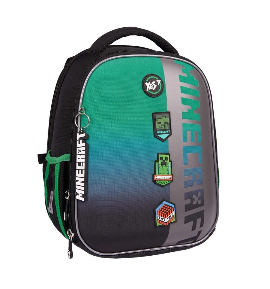 Каркасний рюкзака H-100 Minecraft Icons від бренда YES створений спеціально для хлопчиків, які обожнюють гру Майнкрафт. Прогумовані нашивки у вигляді елементів з улюбленої гри та тематичний брелок неодмінно сподобаються майбутньому першокласнику.