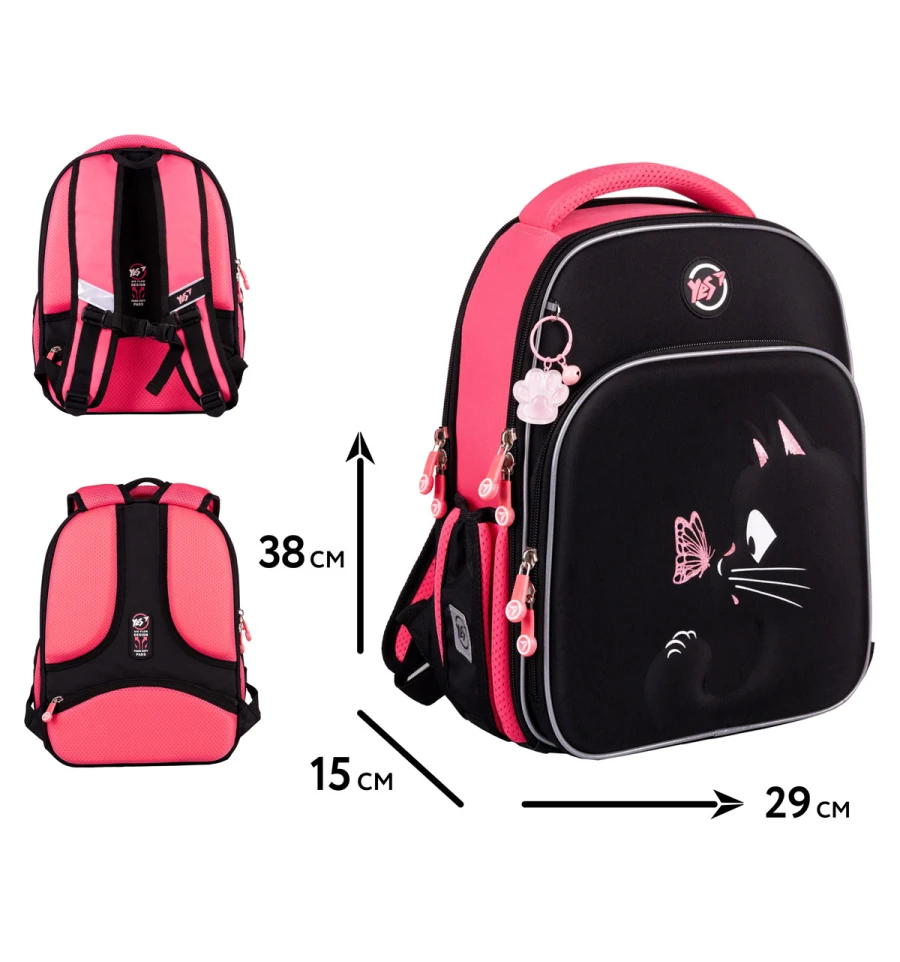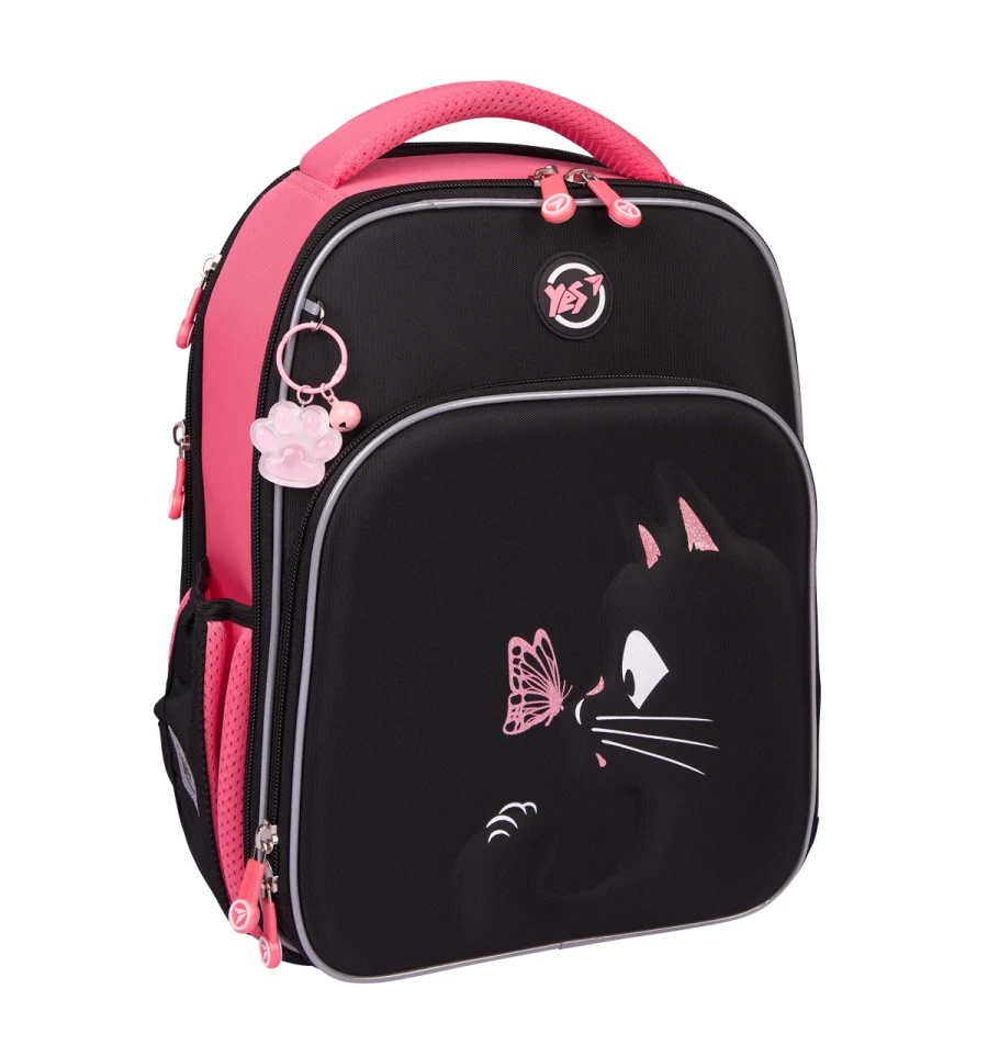 Милий принт кошеня з метеликом на носі на шкільному рюкзаку YES S-78 Kitty and Batterfly подарує відчуття чарівництва та безтурботності. А брелок-лапка як міні-сумочка дозволить швидко діставати необхідні дрібниці без необхідності ритися в основному відділенні рюкзака.