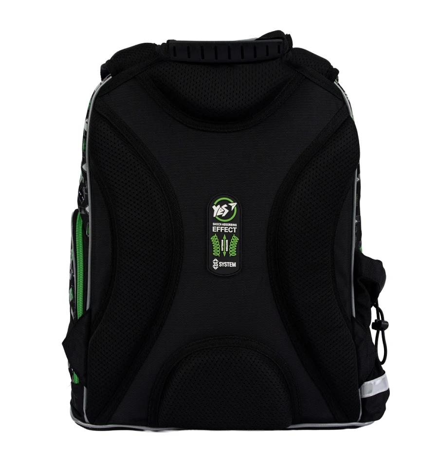 Особливістю та основною перевагою моделі YES S-100 є інноваційна система 3S. Це новітня розробка в області ергономіки, створена спеціально для школярів з урахуванням їх фізіологічних потреб при активному русі. Система 3S представляє собою особливу конструкцію кріплення лямок, яка є частиною спинки рюкзака. Система 3S суттєво зменшує навантаження на хребет та тиск на плечі дитини під час руху завдяки ефекту амортизації навантаження. Дослідним шляхом встановлено, що шкільний рюкзак YES S-100 з ортопедичною спинкою та системою 3S зменшує (до 70 %) тиск на плечі дитини при ходьбі ніж звичайні рюкзаки. Унікальні характеристики системи 3S мають патентні підтвердження. Завдяки 3S ваш школяр захоче самостійно носити свій рюкзак до школи, оскільки це буде дуже легко!