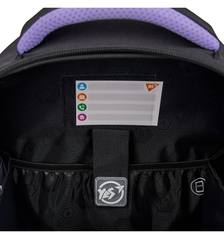 Зручні деталі внутрішньої організації напівкаркасного шкільного рюкзака Yes S-109: